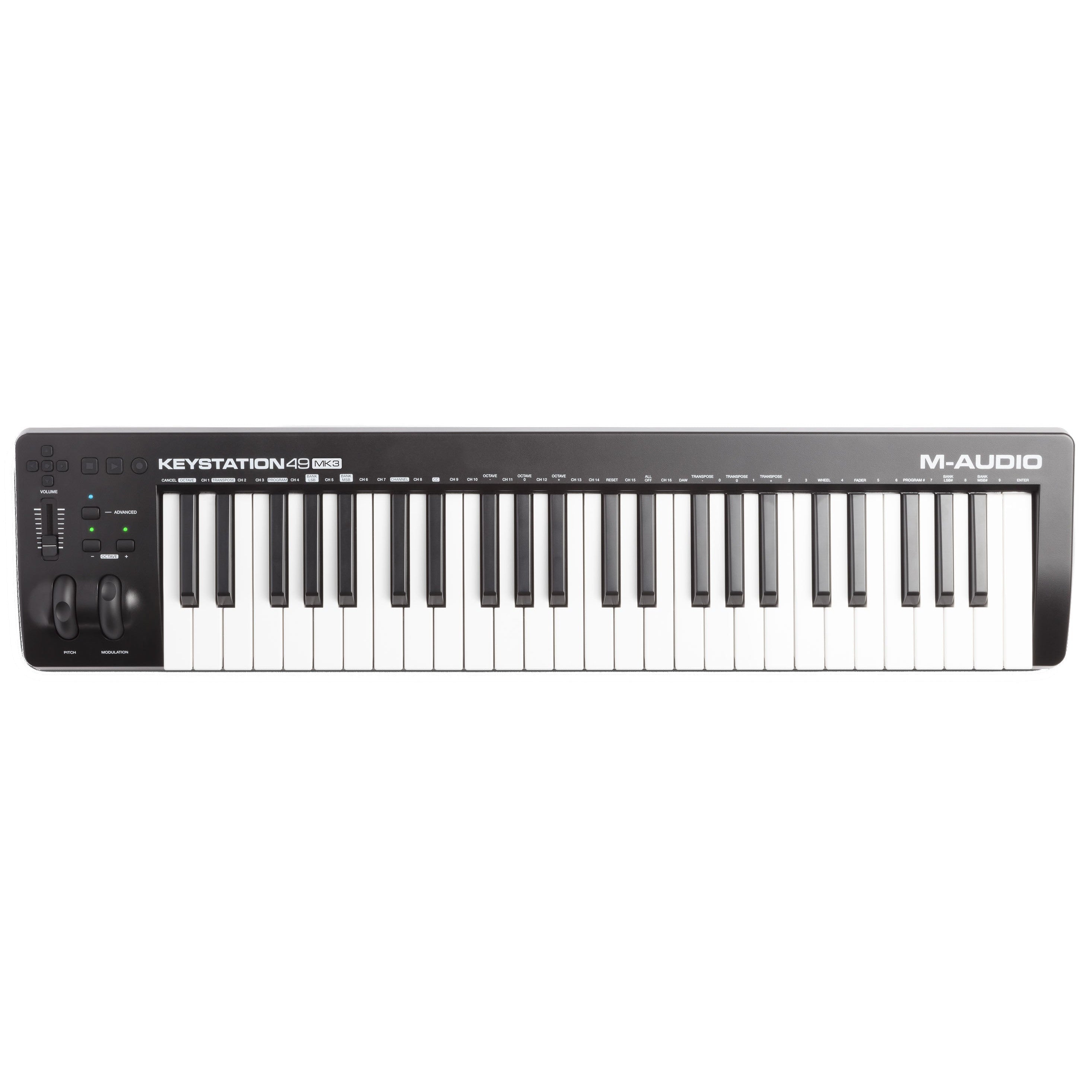 Start creating and performing music with your mac or PC with the world’s best-selling keyboard controllers: The Keystation Series from M-Audio. Whether you’re a seasoned pro looking for just the right controls or are looking to get started with the right USB MIDI controller, the Keystation 49 MK3 is a simple, powerful MIDI controller designed for sequencing music and playing virtual instruments on your Mac or PC. Keystation 49 MK3 features 49 natural feeling full-size velocity-sensitive keys and comprehensive controls that expand the range of playable notes, expressive capabilities, and enhance your recording workflow.