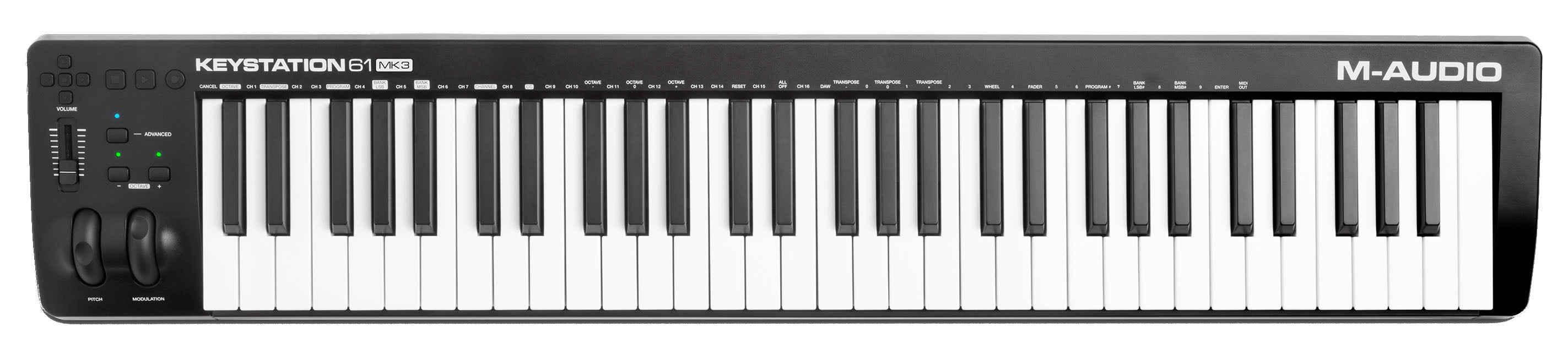 Start creating and performing music with your Mac or PC easy with the world’s best-selling keyboard controllers: The Keystation Series from M-Audio. Whether you’re a seasoned pro looking for just the right controls or are looking to get started with the right USB MIDI controller, the Keystation 61 MK3 is a simple, powerful MIDI controller designed for sequencing music and playing virtual instruments on your Mac or PC. Keystation 61 MK3 features 61 semi-weighted full-size velocity-sensitive keys and comprehensive controls that expand the range of playable notes, expressive capabilities, and enhance your recording workflow.