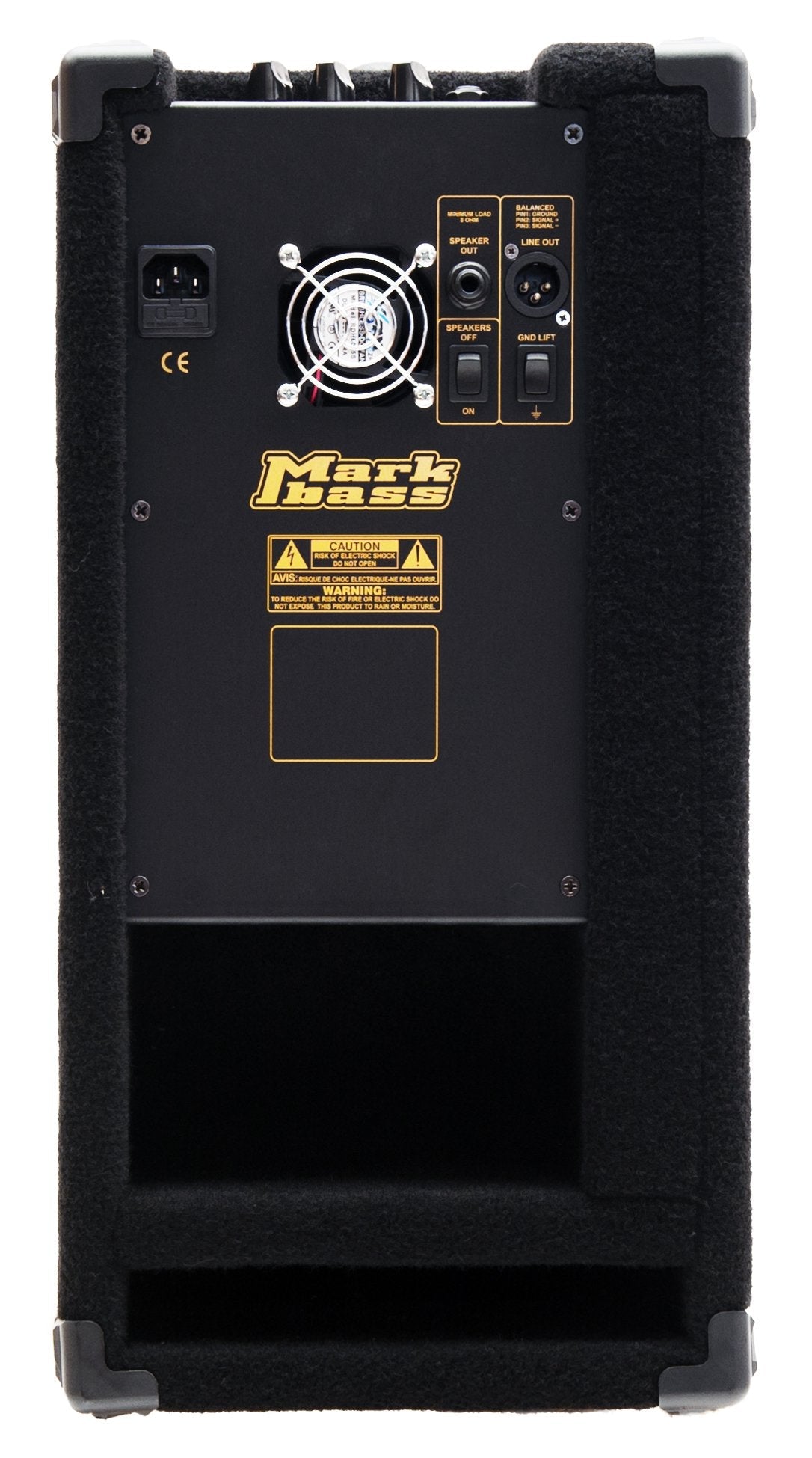SPEAKER: 2x8" TWEETER: piezo BASS PORT: rear IMPEDANCE: 8 ohms SENSITIVITY: 99 dB SPL SPEAKER POWER HANDLING: 250W RMS (AES Standard) AMP OUTPUT POWER: 250W RMS @ 4 ohms / 150W RMS @ 8 ohms FREQUENCY RESPONSE: 53 Hz to 18 kHz CROSSOVER FREQUENCY: 3.5 kHz WEIGHT: 27.56 lbs / 12.5 Kg WIDTH: 10.04 in. / 25.5 cm HEIGHT: 19.29 in. / 49 cm DEPTH: 15.16 in. / 38.5 cm OTHER: AUX IN HEADPHONES OUT XLR Line Out SPEAKER ON/OFF POWER REQUIREMENT: 100/120V; 230V; 240V 50/60Hz (Voltage is factory preset according to region of sale)Markbass amps/combos are manufactured to be sold and used in the country of purchase, and they are factory preset to that country’s voltage. Due to homologation issues, the voltage may not be changed. Product specifications are subject to change without notice.