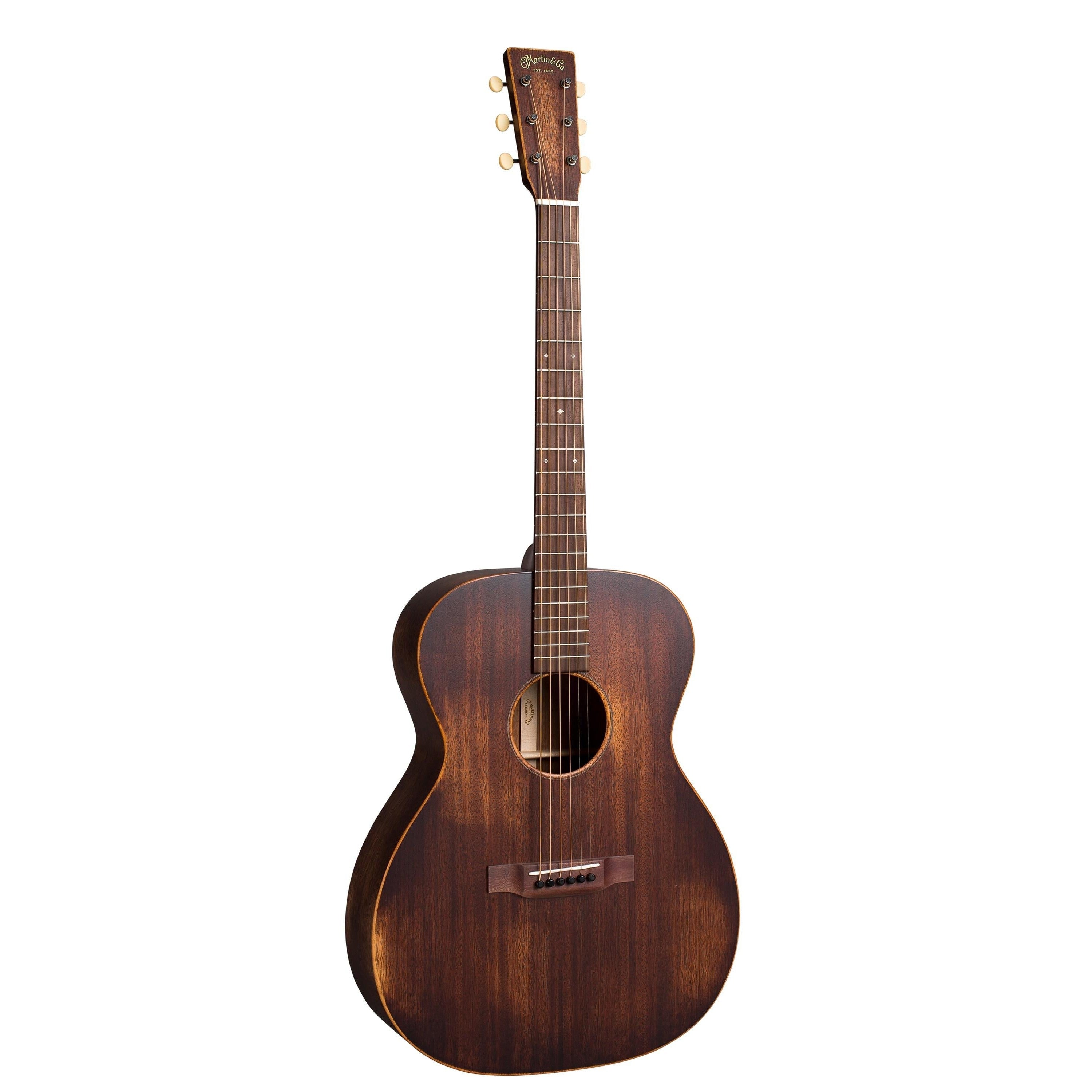 Model: 000-15M StreetMaster™ Construction: Simple Dovetail Neck Joint Body Size: 000-14 Fret Top Material: Mahogany Top Detail: None Rosette: Multi-Stripe Bracing Pattern: X Brace Brace Shape: Non-Scalloped Brace Material: Sitka Spruce Brace Size: 5/16" Back Material: Mahogany Back Detail: None Back Purfling/Strip: None Side Material: Mahogany Side Detail: None Endpiece: None Endpiece Inlay: None Binding: None Top Inlay Material: None Side Inlay Material: None Back Inlay Material: None Neck Material: Mahogany Neck Shape: Modified Low Oval Neck Taper: Standard Taper Plek: Yes Nut Material: Bone Headstock Shape: Solid with Square Taper Headplate Material: Mahogany Headplate Detail: N/A Headplate Logo Style: Script Old Style Overlay Headplate Binding Material: None Heelcap: None Fingerboard Material: Katalox Scale Length: 5.4" Neck Joins Body At: 14th Fret Number of Frets Total: 20 Fingerboard Width at Nut: 1 11/16'' Fingerboard Width at 12th Fret: 2 1/8'' Fingerboard Inlay Material: Abalone Fingerboard Inlay Style: Diamonds and Squares Short Pattern Fingerboard Binding Material: None Side Dots: Yellow Back and Side Finish: Satin Back and Sides Color: Dark Mahogany Finish Top: Satin Top Color: Mahogany Burst Finish Neck: Satin Neck Color: Dark Mahogany Bridge Material: Katalox Bridge Style: Modern Belly - Drop in Saddle Bridge String Spacing: 2 1/8'' Saddle: Compensated Bone Saddle Radius: 16" Tuning Machines: Golden Age Relic Nickel Recommended Strings: SP Acoustic 92/8 Phosphor Bronze Light (MSP4100) Knob: Cream Plastic Bridge Pin Material: Ebony Bridge Pin Dots: None Pickguard: None Pickguard Inlay: None Case: Soft Gig Bag Label: None Electronics: None