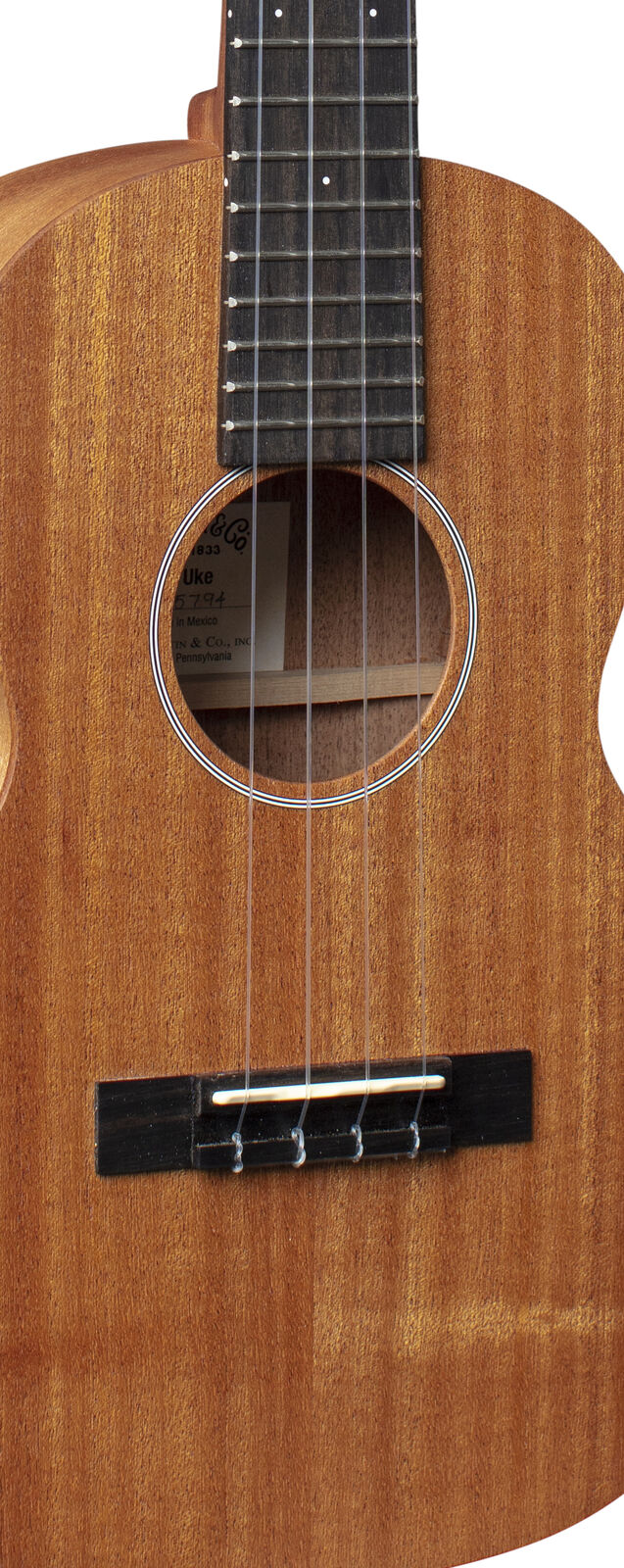 Built for serious players who want premium tone in an environmentally friendly instrument, this tenor-sized uke is made from 100% FSC® woods. It includes a sapele top, back, and sides and an ebony fingerboard and bridge. You can feel good knowing that all the wood in this ukulele is responsibly sourced, and you’ll look and sound great too. This ukulele is constructed with an applied dovetail sipo neck for extra stability. It sports Ratio® tuners—a new feature on Martin ukes—to get you in tune quickly and accurately, and its satin finish adds the perfect amount of shine. This sustainable model also includes a striking blue gig bag made from recycled plastic water bottles that were pulled from the ocean, and it meets the Global Recycled Standard. Set the right tone for the planet with the T1 Uke.