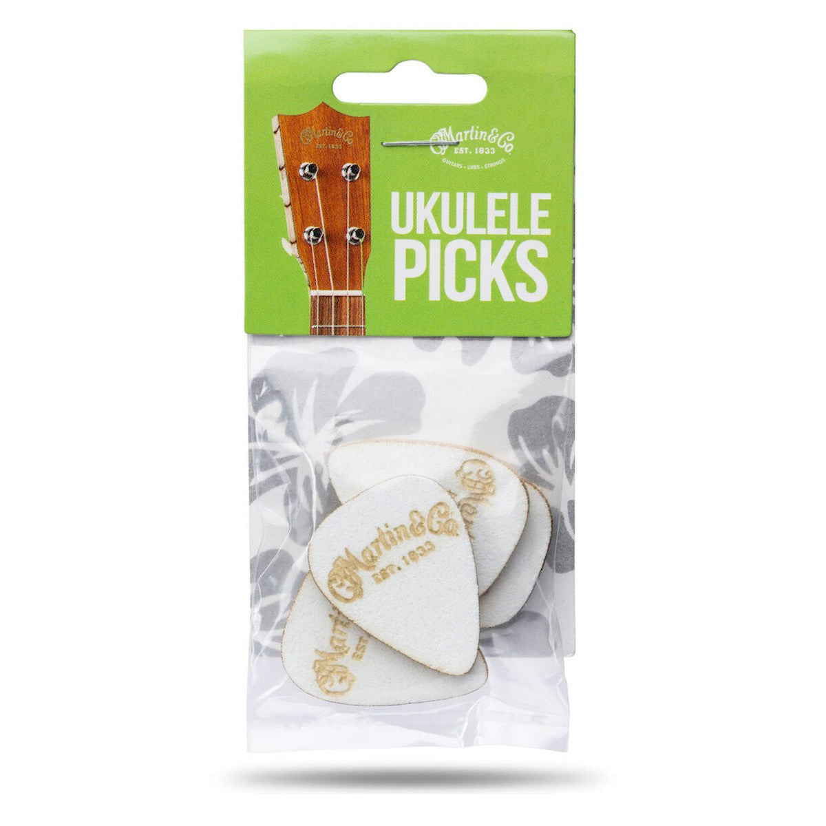 Make your uke sing with soft, durable picks. Custom designed to bring out the most from the nylon strings of a ukulele, with none of the dust and deterioration of felt picks. 2.5 mm White with pressed C.F. Martin logo Four picks per pack