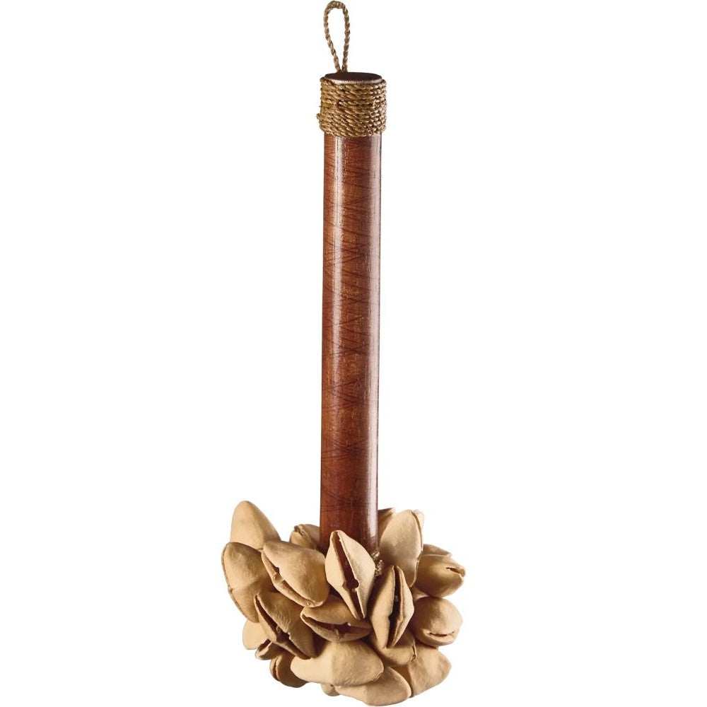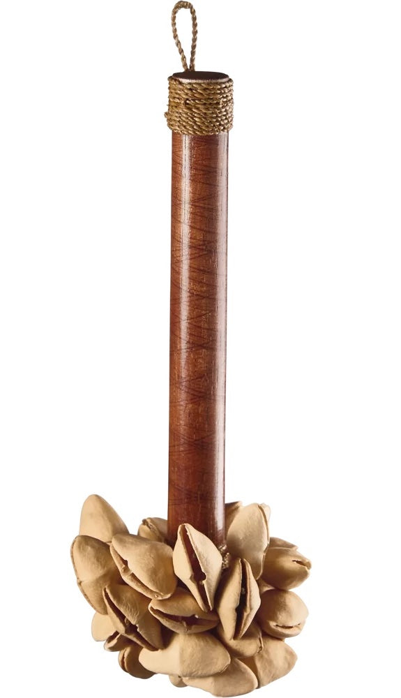 Kenari seed nutshells, attached to a rod, create a unique, versatile instrument.