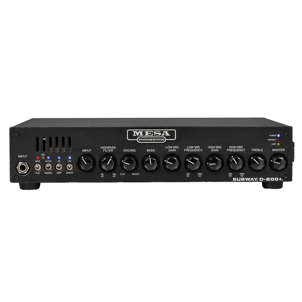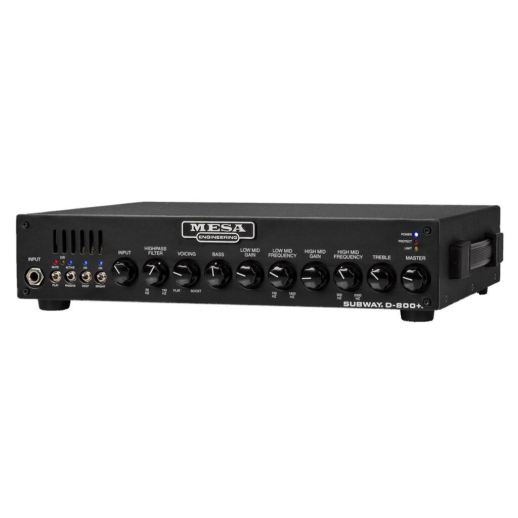 UPGRADED FEATURES FOR MORE TONAL CONTROL AND AN INTERFACE FOR OUTBOARD SIGNAL PROCESSING The SUBWAY D-800 addresses the player who wants enhanced frequency control and an interface for outboard signal processing. The upscale D-800+ preamp features expand upon the acclaimed D-800 by including a comprehensive EQ section with Semi-Parametric sweep-able LOW and HIGH MID Bands, the addition of a BRIGHT switch, an adjustable HIGH-PASS Filter with control from 30Hz to 150 Hz, and on the Rear Panel, a Series Effects Loop, Tuner Output and 1/4†MUTE footswitch jack. Mesa Subway High Pass Filter The D-800+ upgrades include an adjustable HIGH-PASS Filter that allows control over the sub-lows in your mix from 30Hz to 150 Hz to achieve the tightest response, most detailed articulation and maximum headroom in an ensemble scenario or large venue application. Either way you get there, the straight ahead and beautifully simple D-800 or the upscale, fully featured D-800+, the SUBWAYS deliver nuance-rich Tone, stunning power and headroom and a blend of flexibility and portability that would be any Bassist's dream ride to musical inspiration. FEATURES Made in Petaluma, California with the World's Finest Materials Class D Power with 8/4 or 2 Ohm Impedance Switch for optimum Power to Load Performance 800 Watts @ 4 or 2 Ohms (400 @ 8) Active/Passive Input Switch Play/Mute Switch Preamplifier features: Input Gain with Clip Indicator (O/D LED), Variable High-Pass Filter (30Hz - 150Hz), Variable Voicing (Flat to Vintage Scoop), Fully Active 4-Band EQ (+/- 12dB of Bass, Low-Mid, High-Mid, Treble) with Sweepable (variable) Low-Mid (150Hz-1800Hz) & High-Mid (300Hz-5000Hz) Frequency Controls with Deep Switch (for enhanced low-end) & Bright Switch (for enhanced top-end) and Master Volume Balanced XLR Line Out with Pre/Post, Line/Mic & Ground Lift Switches Series FX Loop Tuner Output (back panel) Mute Footswitch Jack (footswitch sold separately) Headphone Output Auxiliary Input Protection & Limit LED Indicators 2 Speakon Speaker Output Jacks Fan Cooled Gig Bag w/Strap FORMAT Weight: 6.3 LBS. Dimensions: 2.625" H x 13.25" W x 10.15" D