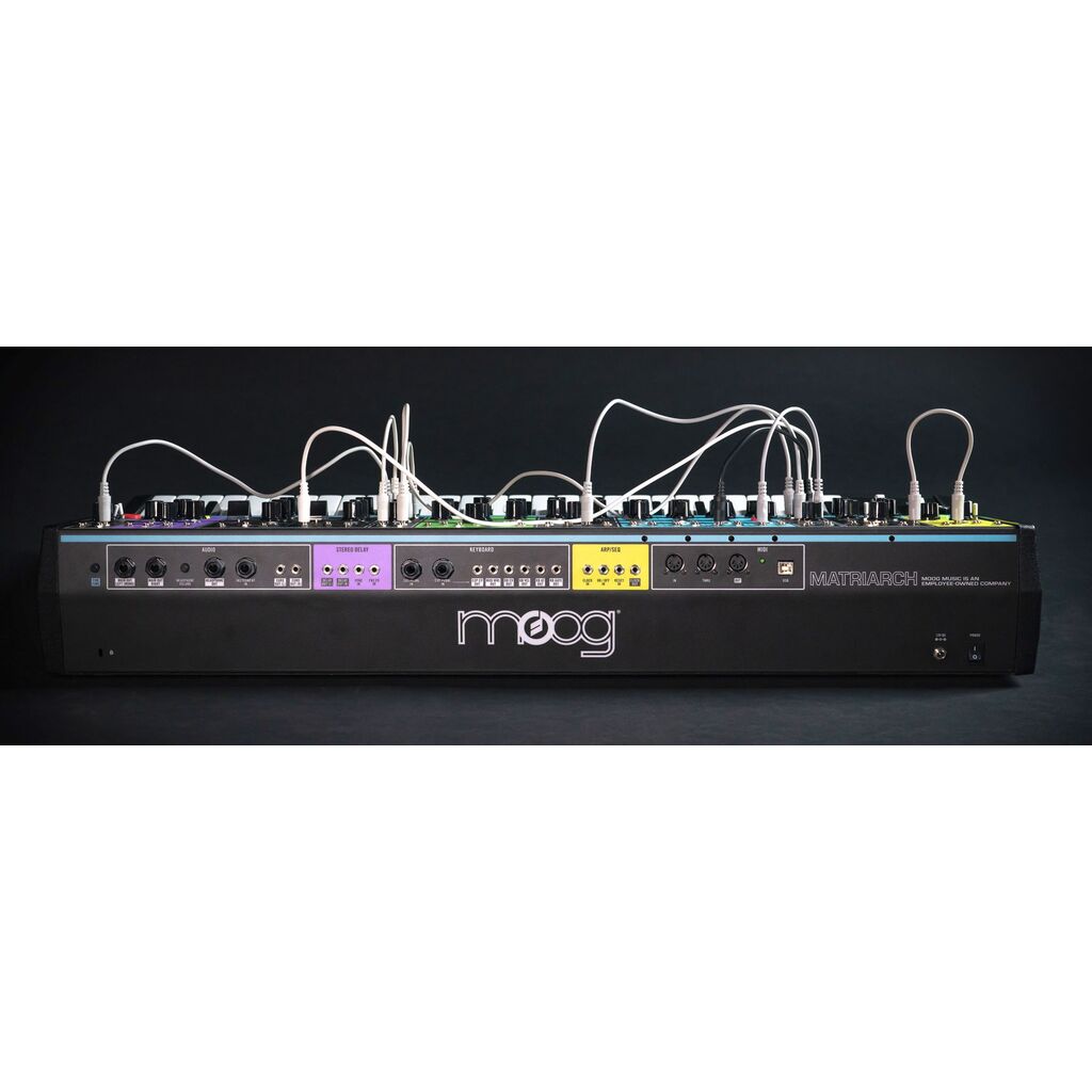 Moog Matriarch is a patchable 4-note paraphonic analog synthesizer with a built-in Sequencer,  Arpeggiator, stereo Ladder Filters, and stereo Analog Delay. Create rich evolving chord patterns immediately with “no patching required”, then tap into an abundance of inspiring textures, new sounds, and an endless supply of happy accidents through Matriarch’s 90 modular patch points. Based on the vintage circuitry of classic Moog synthesizer modules, Matriarch is a catalyst for creative ideas and a medium for multidimensional expression.