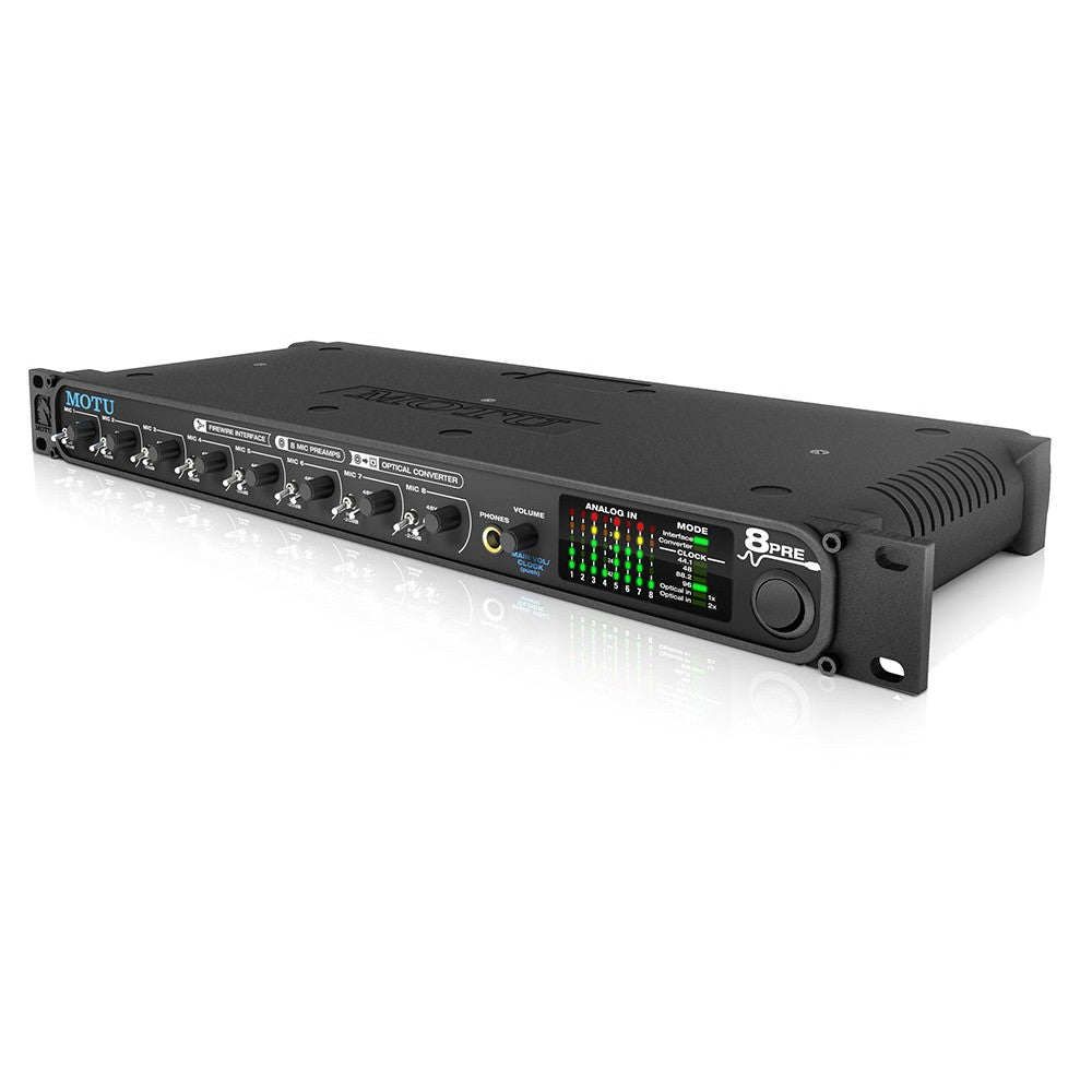 The 8pre FireWire audio interface delivers everything you need to turn your computer into a powerful 24-bit, 96kHz digital audio workstation. The 8pre provides eight microphone/instrument preamps with pristine 96kHz analog recording and playback, combined with 8 channels of ADAT optical digital I/O. Expand your system by connecting additional 8pres or other MOTU FireWire audio interfaces.