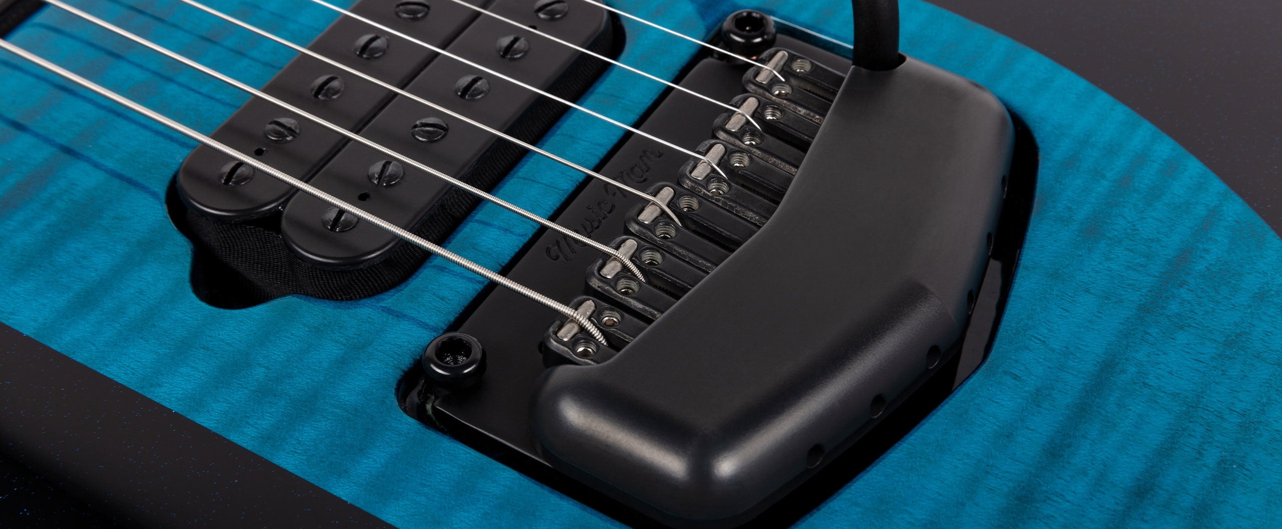 Bridge: Custom John Petrucci Music Man® floating tremolo of matte black, hardened steel with Fishman Powerbridge piezo saddles