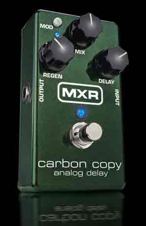 The MXR Carbon Copy Analog Delay features a completely analog audio path for the ultimate in rich, warm delay—made possible only by old-school bucket brigade technology. This design boasts an amazing 600ms of delay time with optional modulation via a top-mounted switch and a simple, three-knob layout that controls Delay time, Mix (dry/wet blend), and Regen (delay repeats)—all in a pedal no bigger than a Phase 90. In addition, two internal trim pots offer user-adjustable width and rate control of the modulation for even more tonal options. The Carbon Copy will take you from crisp “bathroom” slap echoes to epic, Gilmour-esque delays with a twist of a knob. True hardwire bypass, single 9-volt operation, and stage-ready blue LEDs round out the package. Available only from Dunlop Manufacturing, the world’s leader in analog pedal technology.