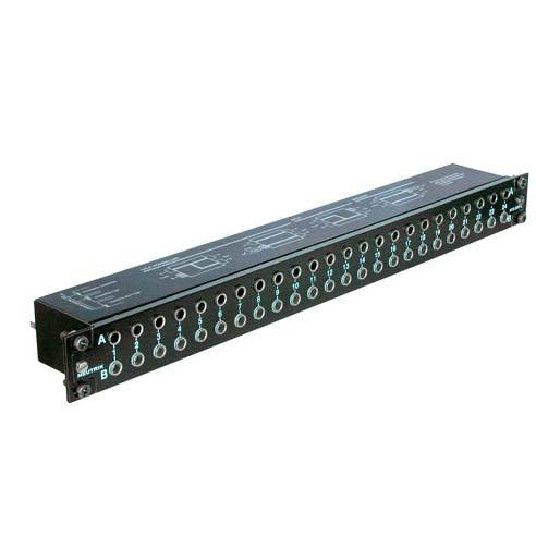The NYS-SPP-L1 is a economical and remarkable sleek designed 1/4“ modular Patch Panel for 19“ rack mount (19“ x 1U) with a reinforced metal housing. Each of it‘s 48 PCB wired balanced channels (24 front pairs and corresponding 24 rear pairs) can either be grounded separately or in groups of inividually chooseable channel numbers.?The PCBs are held securely in place by being clamped between the front and the rear panel, this grants an easy reconfiguration of the Patch Panel without the danger of loosing any small parts (e.g. nuts). The grey jack serves as an easy and distinguishable normalling identification.
