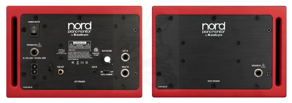 The Nord Piano Monitor system is exclusively engineered for optimal dynamic reproduction of the electric and acoustic pianos in the Nord Piano Library. Developed to give you the optimal nearfield listening the compact Nord Piano Monitor system lets you experience the true character of our renowned piano sounds with impressive depth and dynamics – a natural extension of our instruments. Piano Monitor Brackets For the ultimate nearfield listening experience the Nord Piano Monitor speakers can be mounted to the Nord Piano 4, Nord Grand and Nord Stage 3 Rev B (88 and HP76) using the optional Monitor Brackets. The Monitor Brackets can also be attached to standard microphone stands. Dual inputs The Nord Piano Monitors feature an additional auxiliary audio input for connecting a laptop or smartphone - perfect for playing along, rehearsing or just listening to music. Mountable on Nord Piano 4, Nord Grand & Nord Stage 3 Rev b Nord Piano Monitors mounted on Nord Piano 4 with Monitor Brackets. Specifications Dual inputs for keyboard (2 x 1/4") and aux (3,5 mm Stereo) Weight 5,5 kg / pair Tweeter size 3/4" Woofer size 4 1/2" 2 x 80 Watt SUB out RCA Compatible with all Nord products
