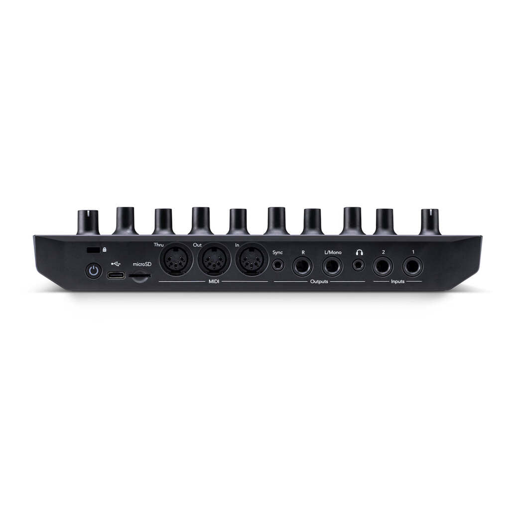 Equally at home alone or among other music machines, Circuit Tracks is a versatile team player. Full-size MIDI in, out, and thru, plus analogue sync out, complements other gear. Two MIDI sequencer tracks let you control and program your external equipment from drum machines to effects units. Audio inputs let you bring all your sounds into the Circuit Tracks environment. Outputs provide monitoring options for all occasions.