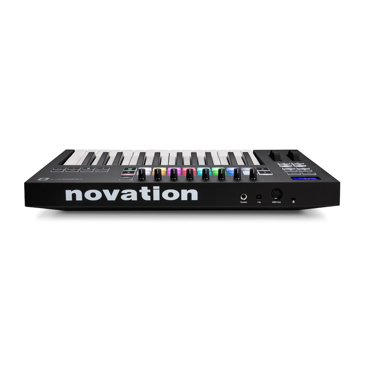 The full-size five-pin MIDI output, works with any MIDI-compatible device. Use Novation Components to configure four Custom Modes, which map Launchkey’s knobs, faders and pads to software and hardware features.