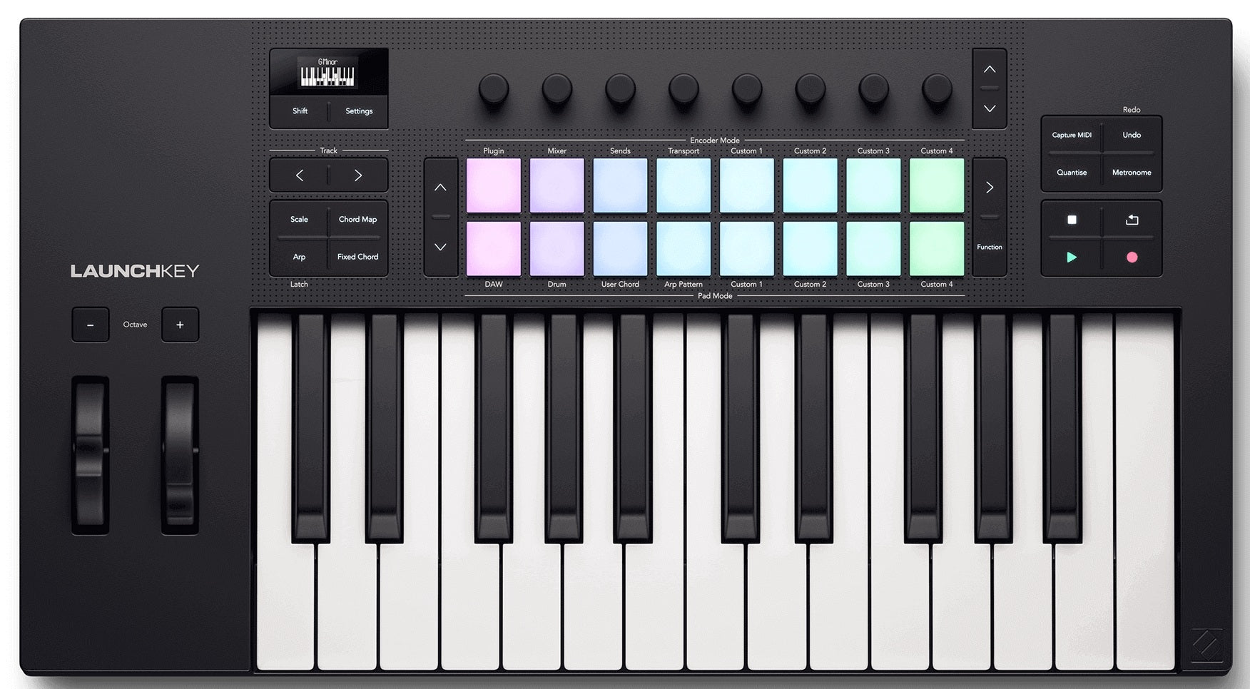Launchkey 25 is a versatile DAW controller packed with essential creation tools. Designed to streamline your creative process, it features a synth-action keybed and 16 responsive pads with polyphonic aftertouch. The well-organised control surface offers comprehensive DAW integration, allowing you to play instruments and drums, launch clips and scenes, and control your DAW’s mixer, devices, and effects with ease.