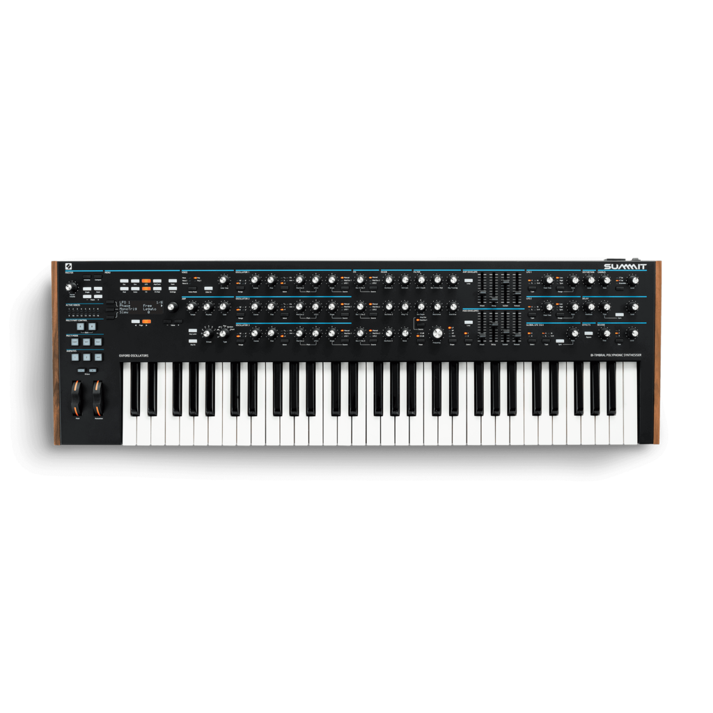 Summit doubles the power of Peak’s digital New Oxford Oscillators up to 16 voices and two parts, and adds a wealth of new features and a premium-quality five-octave keyboard. A synth much greater than the sum of its parts, it gives the serious producer or performer everything they need to design and play stunning basses, leads, arps, pads, effects and beyond.
