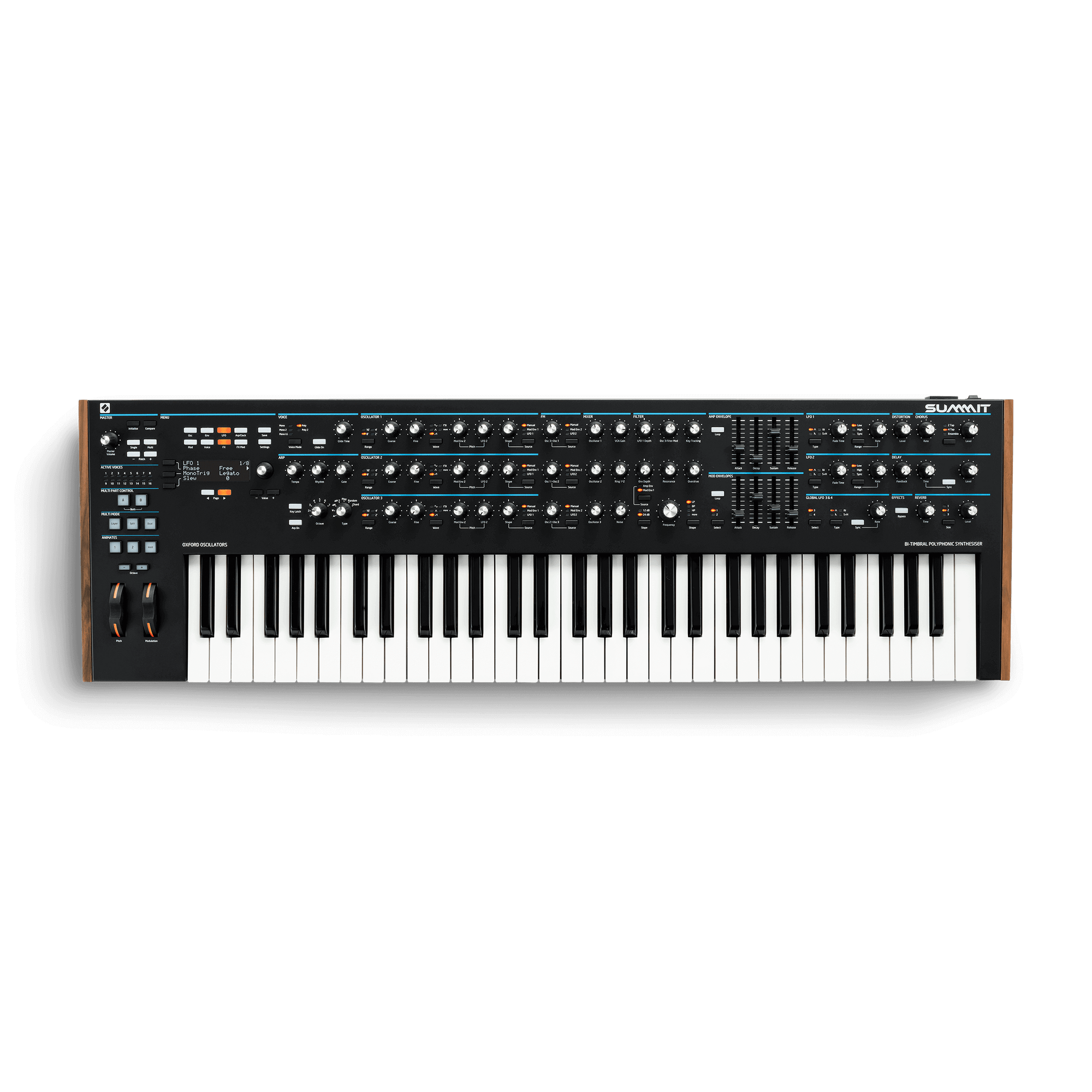 Built on the innovative foundations of our critically acclaimed Peak synthesiser, Summit is a three-oscillator-per-voice, 16-voice keyboard synth that aims to inspire, empower, whether on stage or in the studio. Its Digital New Oxford Oscillators combine the best of analogue sound and digital flexibility – including inbuilt and custom digital wavetables.