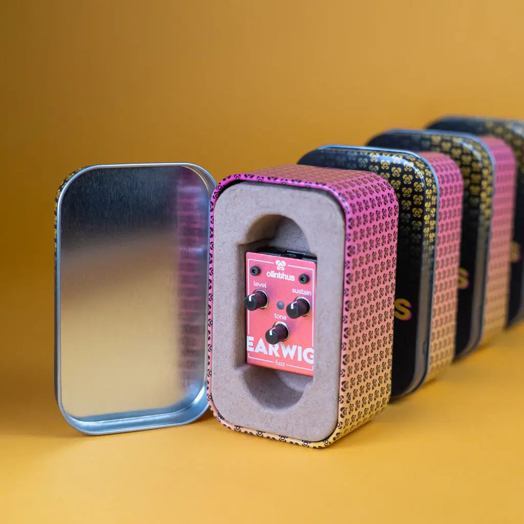 - When you receive Earwig, you will find the pedal nestled within a recyclable/compostable pulp insert, packed inside a reusable metal box. The pulp insert can be thrown in your recycling bin or compost, and this metal box can be easily repurposed for guitar picks, coins, or mind-altering substances! Completely up to you.