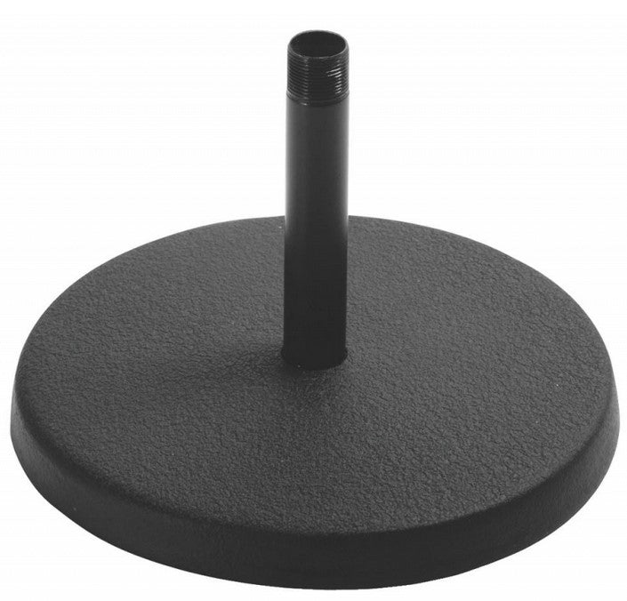 Our DS7100B Desktop Mic Stand excels at short-height miking applications. The removable straight 4" shaft mounts standard mic clips and accessories. A heavy base provides stability and balance for reliable mic support. Nonslip rubber feet reduce vibrations to prevent mic rumble. A model of functional simplicity, this stand makes quick work of setting up a mic on a desk or podium.