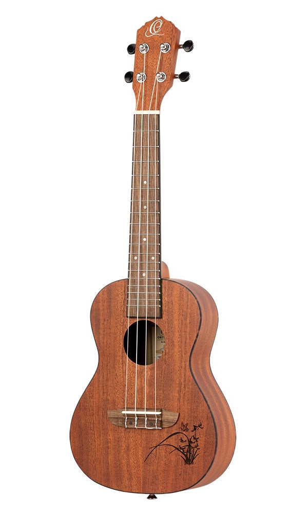 The best-selling Bonfire series features classic Ortega craftsmanship with a touch of flair. Available in all standard sizes, with or without electronics, a variety of wood choices and shapes, and with eye-catching laser engraving, there is a Bonfire ukulele for everyone, even lefties. A classic, affordable ukulele with distinctive laser engraving and electronics with built-in tuner