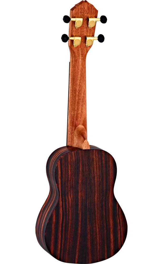 Timber series ukuleles are made from a variety of the finest select tonewoods from around the world. These exceptional ukuleles are meticulously crafted to highlight the unique tonal and visual properties inherent in each species of wood. Mahogany: Understated beauty with warm resonance and a pronounced mid-range Zebrawood: Striking figuring with a full sound and darker overtones Ebony: Rich color depth with a clear and powerful dark tonality that accentuates the bass frequencies Cedar: Classic elegance with a warm, balanced projection Acacia: Dense striping with a deep, woody tone