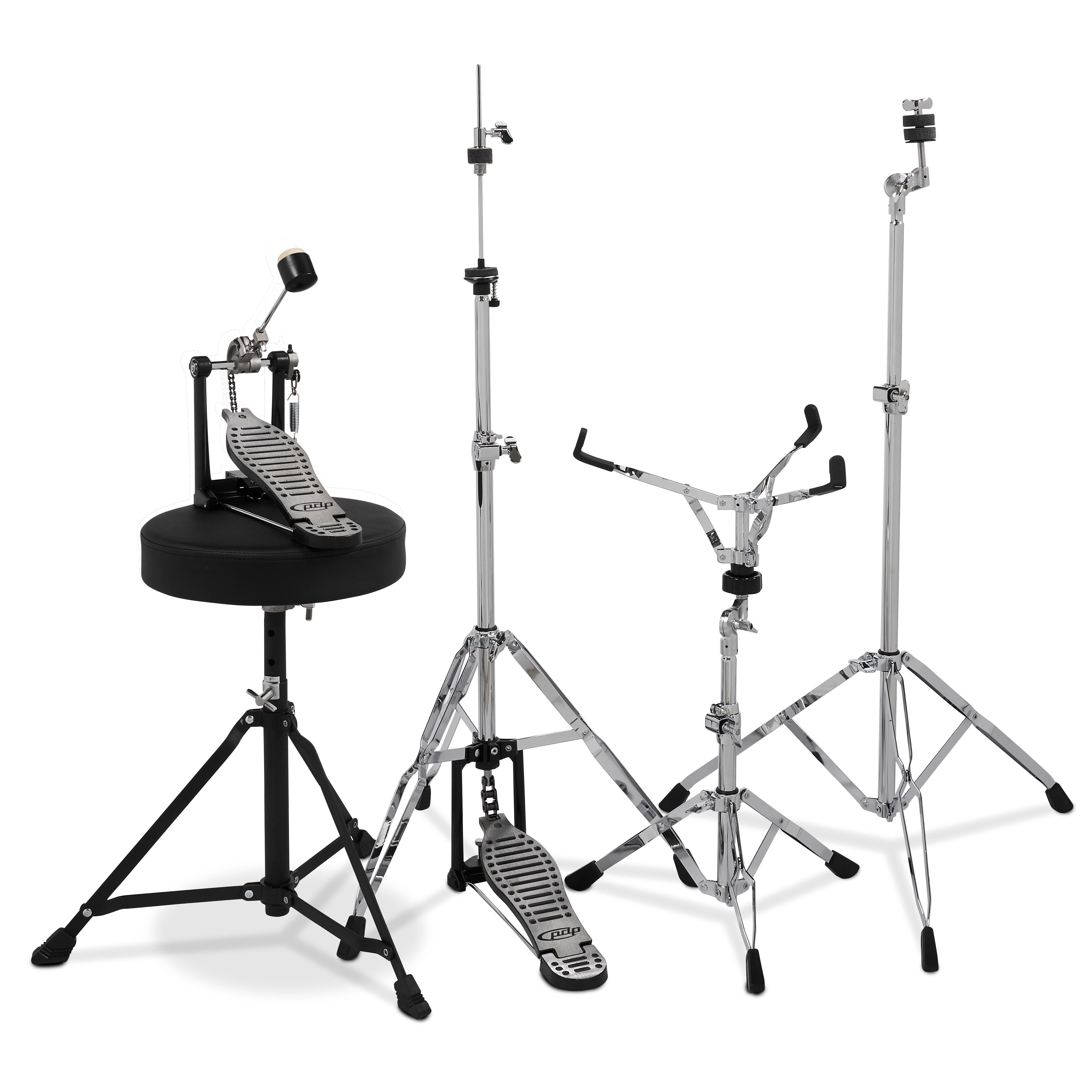 Experience the powerful and smooth low end warmth of these poplar shells. Enjoy the eye-catching appearance and amazing durability of sparkle wrapped finishes. The kit includes a snare, bass drum, floor tom and two rack toms plus a throne, double-braced hardware, brass cymbals and even sticks. True-Pitch tension rods, telescoping spurs and a variety of other features normally reserved for high-end drums make the Center Stage kits perfect for any aspiring player. The PDP Center Stage drum sets are a killer value, featuring exceptional construction and components as well as a full hardware package.