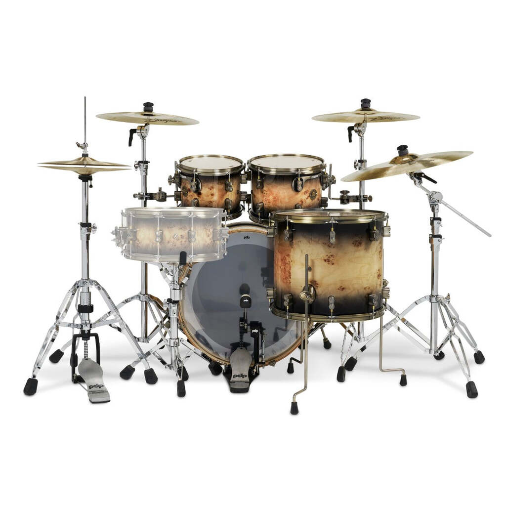 This PDP Concept Series LTD Mapa Burl 4-Piece Shell Pack features 100% European maple shells and figured mapa burl veneers to deliver an experience that’s easy on the ears and the eyes. These 7-ply shells produce the classic warm tones and resonance of maple with mid to low-end attack.