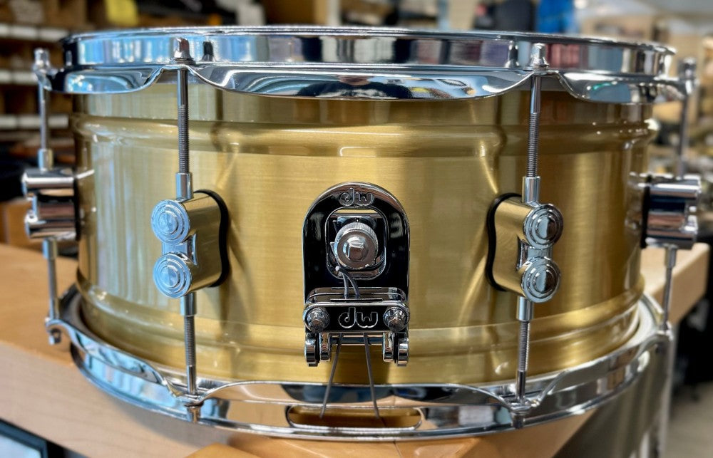 This Concept Series Brass snare drum offers a rolled and double-beaded brass shell with a brushed exterior for a bold, vintage-style satin vibe. This 1.2mm Brass shell produces lower tone from a thinner shell, while pumping out heavy attack and a wide tuning range suitable for various musical styles. The hardware offers stylish dual-turret lugs and high-end DW appointments like a MAG Throw-off, True-Pitch Tuning rods, and Remo heads.