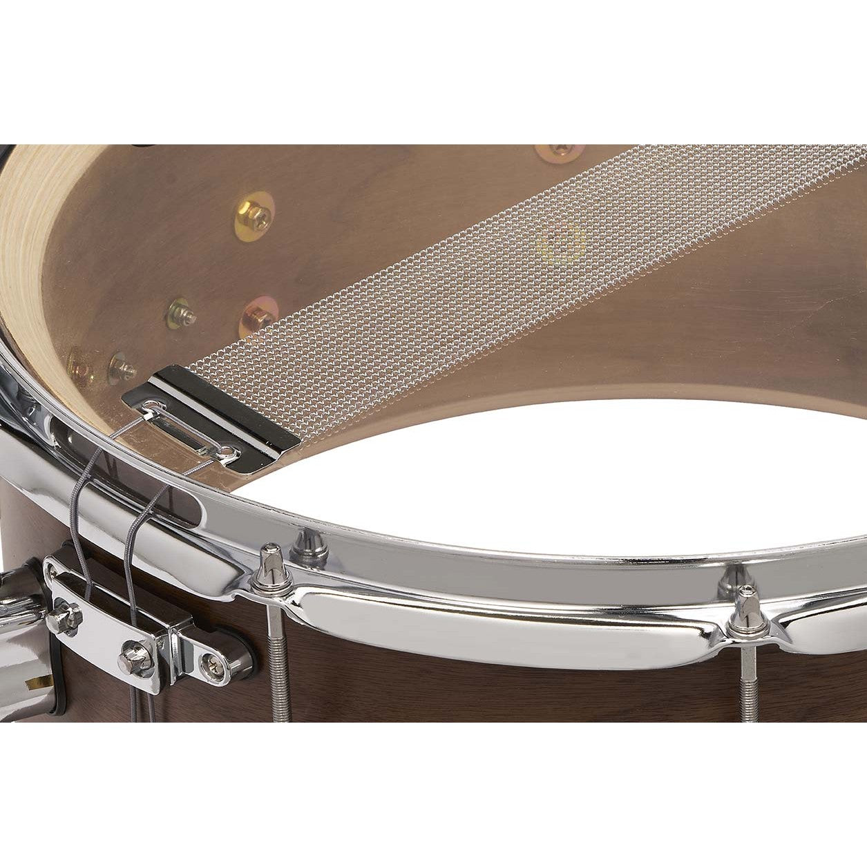 This 5.5”x 14” (PDSN5514MWNS) 20-ply hybrid shell snare drum is a welcome addition to the complete line of PDP offerings. The ultra-thick drum is made with 16 plies of European maple at its core and 4 plies of walnut both inside and outside. Outfitted with a MAG throw-off and distinct dual-turret lugs, this snare produces a fat, throaty sound with a pronounced attack.