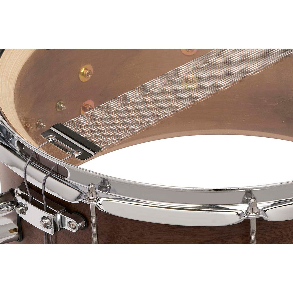 This 7”x 13” (PDSN0713MWNS) 20-ply hybrid shell snare drum is a welcome addition to the complete line of PDP offerings. The ultra-thick drum is made with 16 plies of European maple at its core and 4 plies of walnut both inside and outside. Outfitted with a MAG throw-off and distinct dual-turret lugs, this snare produces a fat, throaty sound with a pronounced attack.