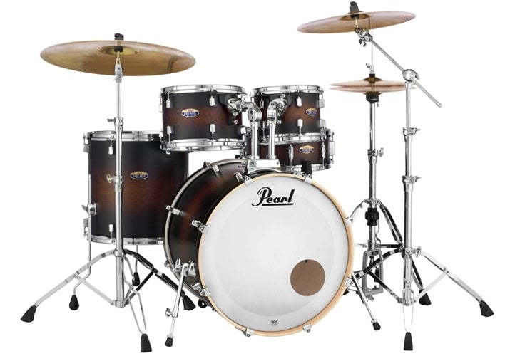 Pearl’s 70 years of drum craftsmanship culminate with the kit you’re ready to step up to. With 5.4mm Maple shells, pro-level features, and gorgeous lacquer finishes, Decade elevates your performance at a price that was previously impossible. Decade Maple drums are perfect as a primary kit for evolving players, or a secondary “gigging” kit for the seasoned pro. Drum Hardware: Decade’s low-mass/low-contact shell hardware assures optimum shell performance and rock-solid durability. Features include Uni-Lock gearless tom arms, insulated die-cast claw hooks, R40 Air Suspension Floor Tom feet, and a newly-designed mini lug. Shell Composition: Decade’s 6-ply/5.4mm all Maple shell is what sets it apart from the other players in the field. The final product of ten years of process and material refinement, each cross-laminated ply incorporates Pearl’s proprietary Superior Shell Technology. The resulting thin (but powerfully strong) shell reacts quickly to the stroke, producing beautifully resonant highs and thundering lows. Pearl’s Superior Shell Technology utilizes a proprietary technique for achieving the ultimate air chamber. It begins with select woods chosen for their unique acoustic attributes, milled to precise thickness with overlapping scarf joint seams, for a perfect air-tight fit. The wood plies are saturated with Pearl’s proprietary “AcoustiGlue” that permeates every pore and dries to the exact consistency of the wood for optimum resonance. Finally, the plies are formed in high-temperature molds with 1000 PSI of hydraulic pressure to produce perfect drum shells that exhibit superior tone, optimal resonance and extreme strength.
