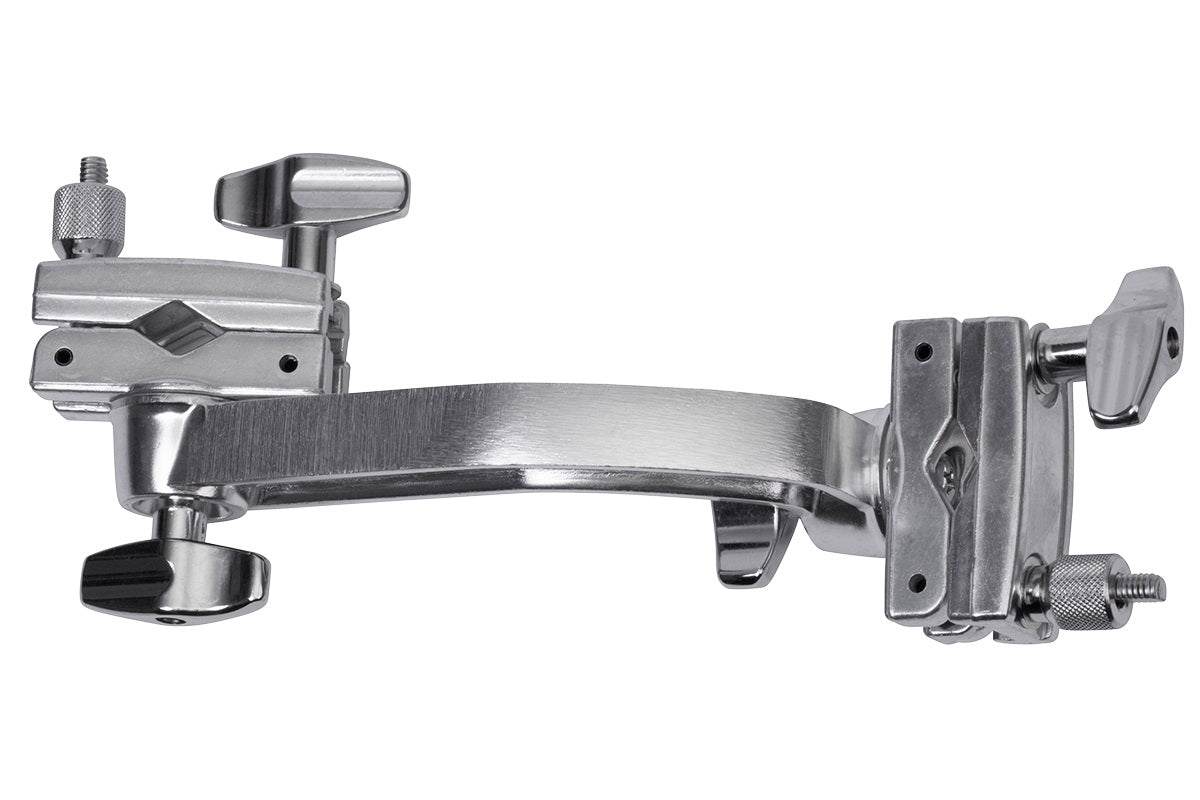 The Pearl AX25L Dual Axis Two Way (Long) Clamp offers added reach in attaching drums and accessories around the drum set. Its die-cast Quick Release clamps attach securely to practically any cymbal stand or mounting arm, and strong multi-angle tilters give each clamp reliable adjustability without backing out under high-impact play.