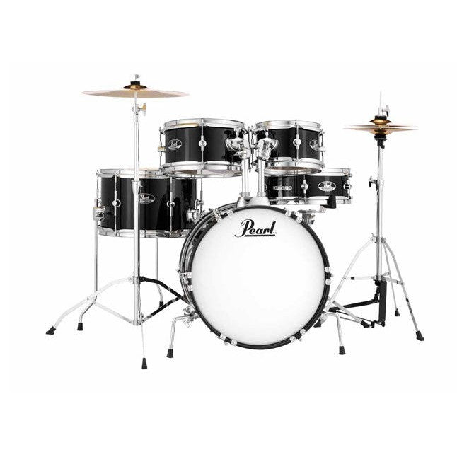 Second-rate gear only makes the drumming journey harder. Here are some things to look for when buying your first drum kit; see for yourself how Roadshow stacks up: HARDWARE Cymbal, hi-hat, and snare drum stands should start with a strong and well-balanced tripod base. Double-braced legs and interlocking tilter adjustments are also vital for keeping all parts of the kit in place under the pressure of performance. ROADSHOW’s included hardware package is second-to-none in its class. All stands are dual-reinforced, height and angle adjustable, and feature double-braced legs to withstand the pounding onslaught of the heavy-hitting drummer. SNARE DRUM The Snare Drum is the voice of the drum set and captures everything from the loudest accents to the softest “ghost” notes. With a matching shell and finish, the ROADSHOW snare is full of attack and power, yet sensitive enough for drumming at any volume. BASS DRUM The bass drum is the tonal heartbeat of the drum set and should not only set the low-end pulse for the groove, but be a foundation for the rest of the complete drum set-up. The ROADSHOW kick drum features an extended tension/tuning range for low, chest-thumping bass frequencies, and includes locking, slip-free feet (or ‘spurs’), and secure mounting for toms and accessories. CYMBALS ROADSHOW’s included cymbal set features a 16” brass crash/ ride and a set of 14” brass/hybrid hats. Perfect for accents and timekeeping until an upgraded multi-cymbal set-up is acquired.