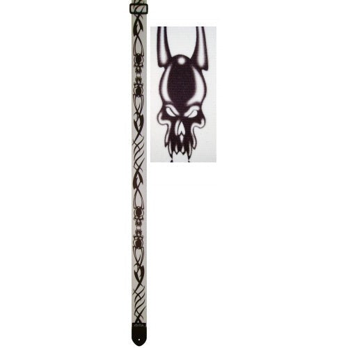 This is a 2” wide polyester strap with the adjustable length of 39” to 58”.