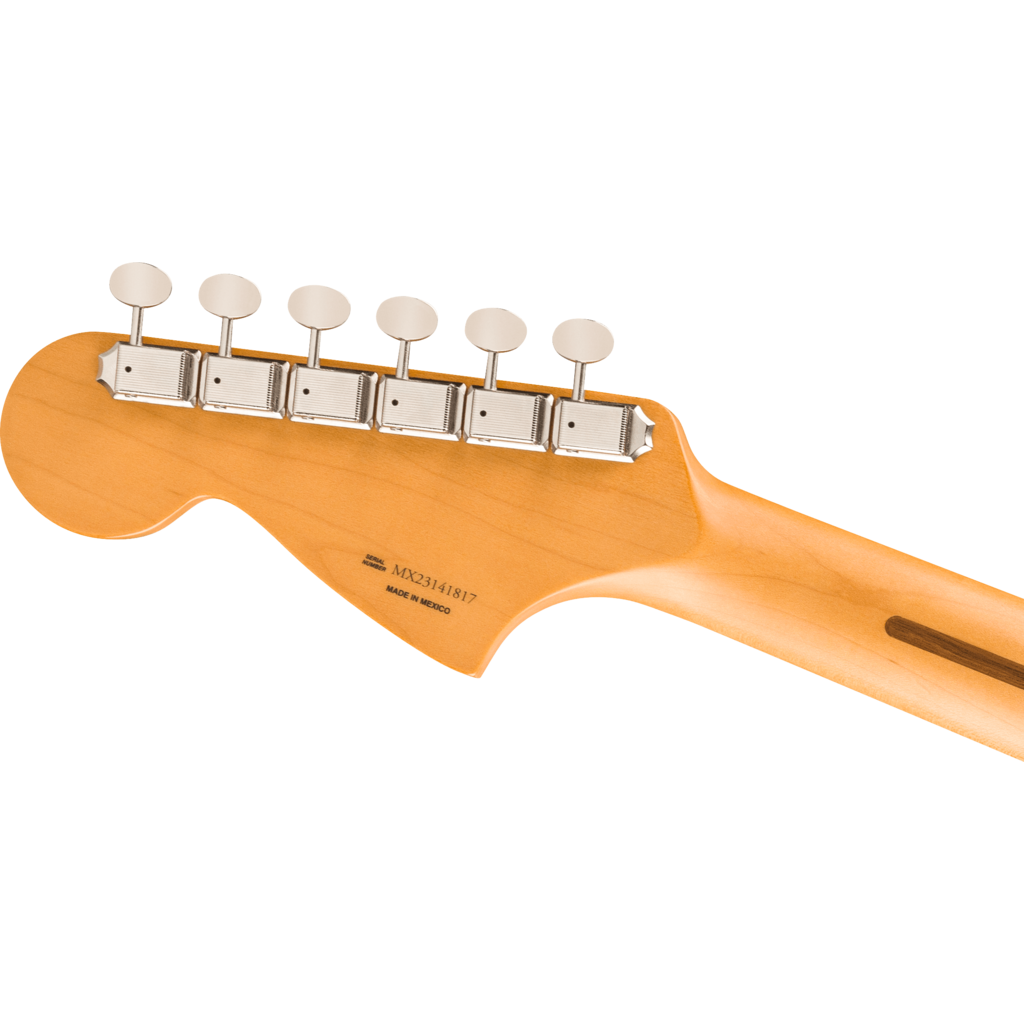 The Player II Jaguar radiates timeless Fender charm, but under the hood, it's primed for today's players. Everything about the neck is designed for fast and fluid playability, from the Modern “C”-profile with silky satin urethane finish on the back to the comfy 9.5”-radius slab rosewood with smooth rolled edges and 22 medium jumbo frets. A classic alder body is available in both timeless Fender finishes and never-before-seen colors unearthed from the archives. Player Series Alnico V (Bridge) and Alnico II (Neck) Single-Coil Jaguar pickups offer crystalline highs, musical mids and tight lows that elevate any genre. The 3-way blade switch lets you easily dial in everything from glassy neck pickup chime to cutting bridge pickup bite and all points in between, while a 6-saddle Jaguar bridge with Floating Tremolo, upgraded Mustang® saddles and ClassicGear™ tuners ensure precise tuning stability for the flexibility to explore endless sonic possibilities.