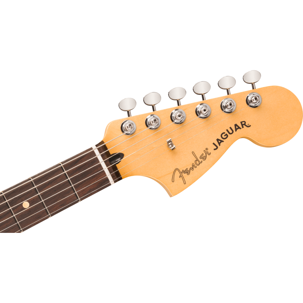 The Player II Jaguar radiates timeless Fender charm, but under the hood, it's primed for today's players. Everything about the neck is designed for fast and fluid playability, from the Modern “C”-profile with silky satin urethane finish on the back to the comfy 9.5”-radius slab rosewood with smooth rolled edges and 22 medium jumbo frets. A classic alder body is available in both timeless Fender finishes and never-before-seen colors unearthed from the archives. Player Series Alnico V (Bridge) and Alnico II (Neck) Single-Coil Jaguar pickups offer crystalline highs, musical mids and tight lows that elevate any genre. The 3-way blade switch lets you easily dial in everything from glassy neck pickup chime to cutting bridge pickup bite and all points in between, while a 6-saddle Jaguar bridge with Floating Tremolo, upgraded Mustang® saddles and ClassicGear™ tuners ensure precise tuning stability for the flexibility to explore endless sonic possibilities.