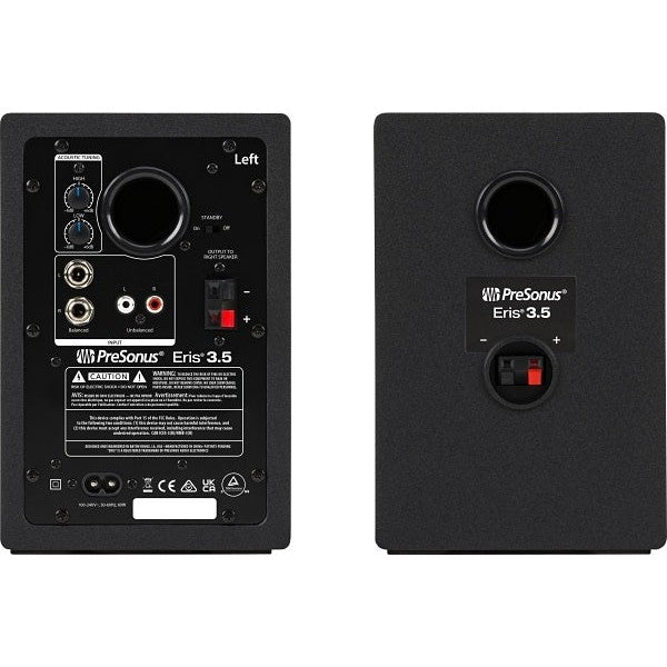 - PreSonus® Eris® 3.5 reference monitors connect to virtually any line-level audio source, using rear-panel, ¼-inch TRS and RCA inputs and a front-panel, ⅛-inch, stereo line input. You also get a convenient (and loud!) front-panel, ⅛-inch, stereo headphone jack; connecting headphones mutes the speakers.