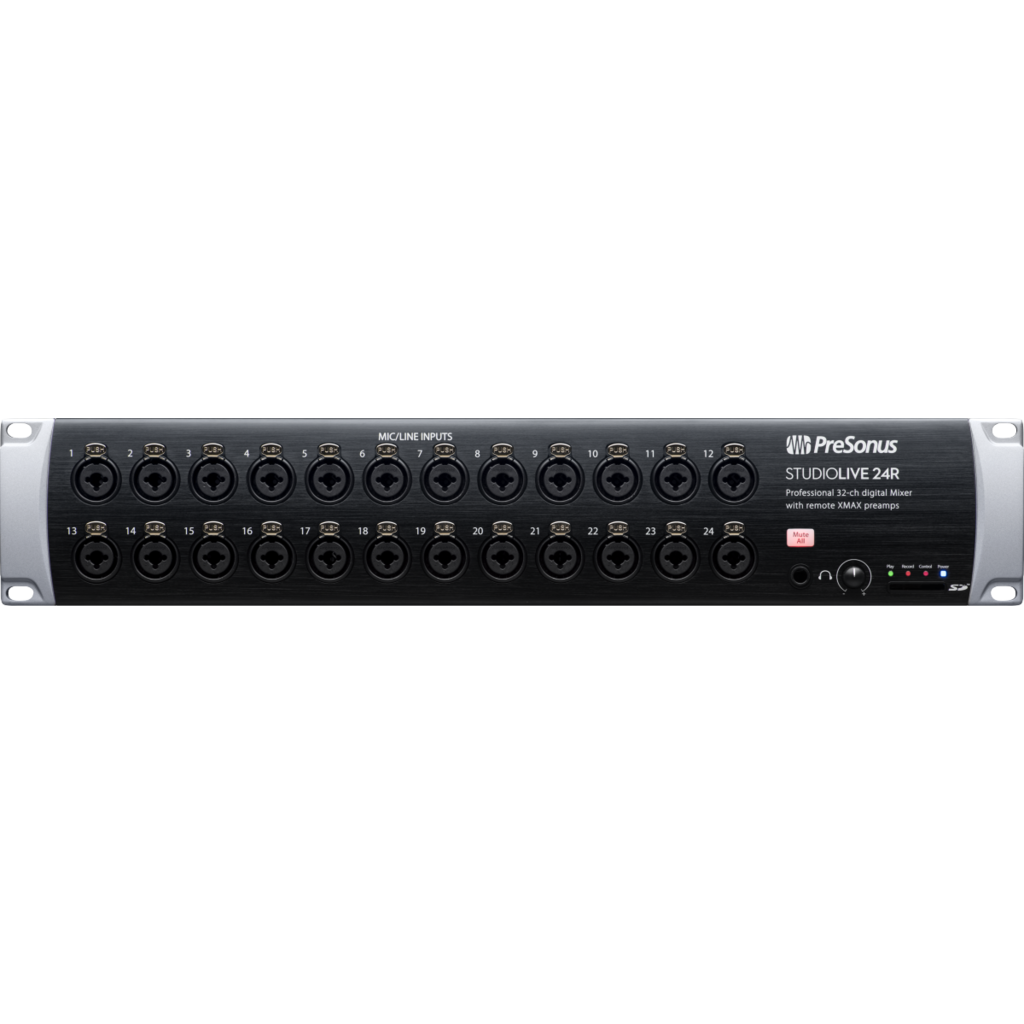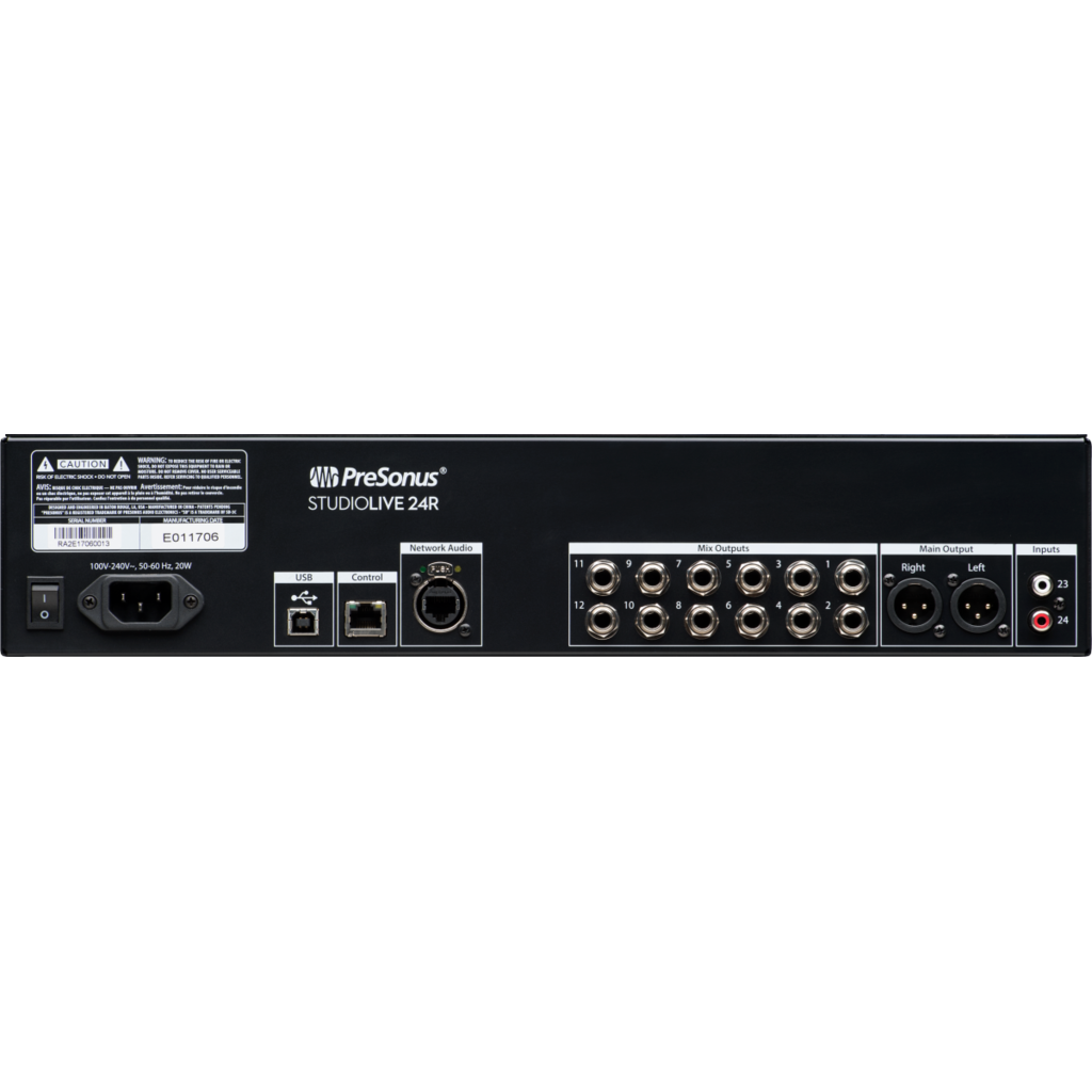 The StudioLive® 24R digital mixer is four audio tools in two compact rackspaces. Use it as a standalone digital mixer with UC Surface remote mixing software. Pair it with your StudioLive Series III console mixer to use as a stage box or integrated monitor mixer. Connect it with EarMix 16M monitor mixers for the ultimate personal monitor system. Plug it into your studio computer, and you have a continuously bidirectional, 128-channel (64x64) USB audio interface with modeled vintage dynamics and EQ plug-ins on every input and bus. Whether used standalone or as part of a complete audio system, no other rackmount digital mixer is as flexible or as powerful.