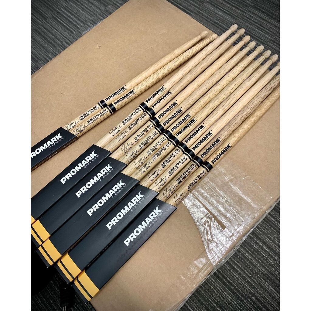 Made of Shira Kashi oak and featuring Promark’s classic diameter, the Neil Peart 747 is perfect when you need more volume. It features an oval tip for a bright, clear cymbal tone, and dense wood with a sturdy feel for increased articulation, weight and durability.