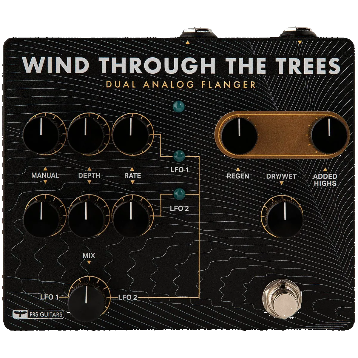 The PRS Wind Through the Trees dual analog flanger pedal is best described as two flangers fighting each other, resulting in a sound reminiscent of the wind whipping through the trees. With Manual, Depth, and Rate controls per flanger as well as global Regeneration and Added Highs, Wind Through the Trees offers nearly endless tonal possibilities. Bottom line, Wind Through the Trees offers hours of fun for any player.