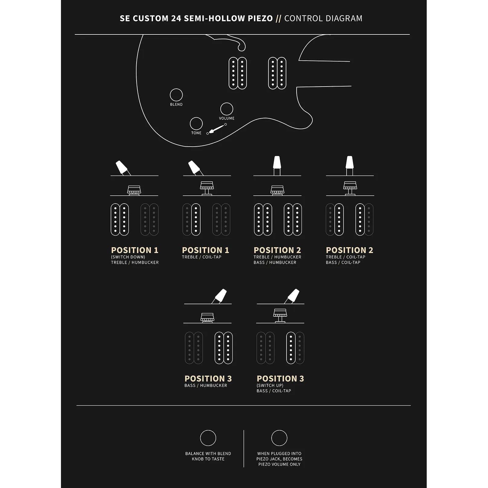 - Additional details include a matching headstock veneer, headstock and fretboard binding, and lampshade knobs. With nearly infinite tones and roadworthy reliability, the PRS SE Custom 24 Semi-Hollow Piezo is a modern classic that looks and feels as good as it sounds.