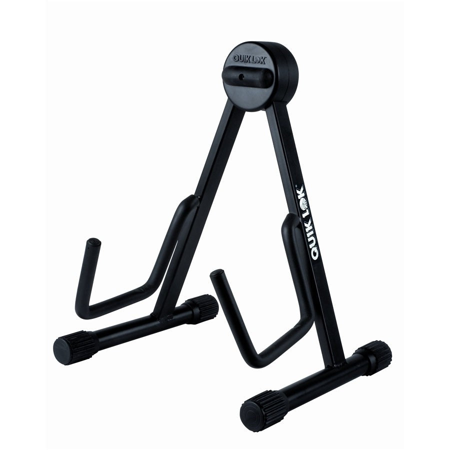 Quik Lok A-frame stands are solidly constructed with high-grade steel and arc-welded joints, in a true integration with high-tech style. Soft rubberized cushioning on cradles holds guitar firmly in place without damaging finish.