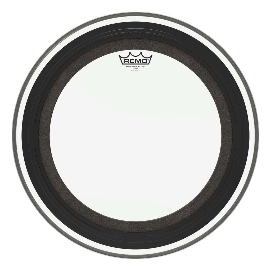 The Ambassador® SMT™ Clear bass drumhead is a pre-muffled design featuring Sub Muffl® Technology. It is constructed with a clear 10-mil single-ply film, and an externally mounted dampening profile with free-floating acoustic foam. It enables the head and drum shell to maintain full sound characteristics with additional attack and low-end frequencies. SMT technology allows a broad tonal spectrum of tuning ranges with controlled high and mid frequencies coupled with deep, powerful low tones. It is a new industry standard and one of the market's most musical and versatile pre-muffled bass drumheads. Ideal for live and recording applications.
