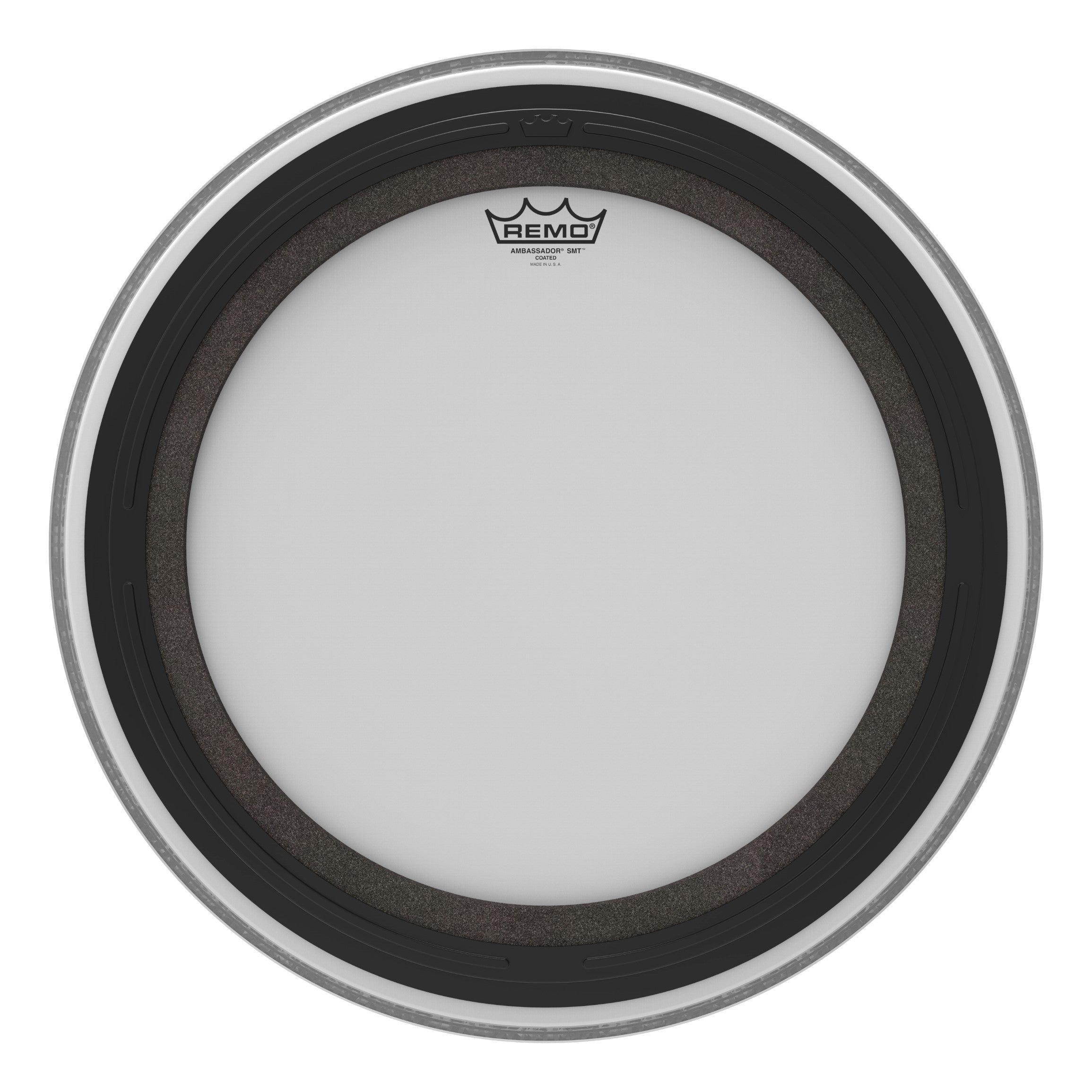 The Ambassador® SMT™ Coated bass drumhead is a pre-muffled design featuring Sub Muffl® Technology. It is constructed with a coated 10-mil single-ply film, and an externally mounted dampening profile with free-floating acoustic foam. It enables the head and drum shell to maintain full sound characteristics with additional attack and low-end frequencies. SMT technology allows a broad tonal spectrum of tuning ranges with controlled high and mid frequencies coupled with deep, powerful low tones. It is a new industry standard and one of the market's most musical and versatile pre-muffled bass drumheads. Ideal for live and recording applications.
