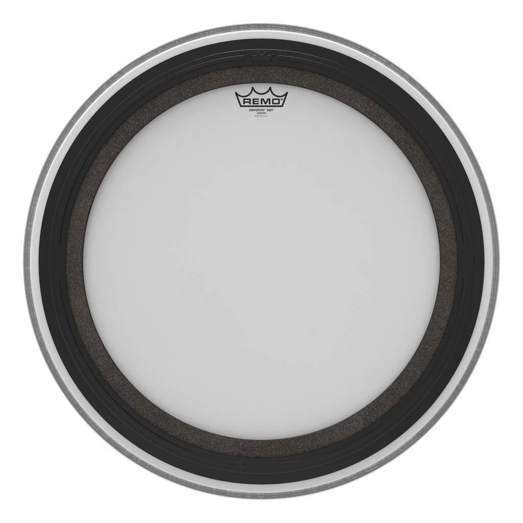 The Emperor® SMT™ Coated bass drumhead is a pre-muffled design featuring Sub Muffl® Technology. It is constructed with 2-plies of 7-mil and 5-mil coated film, and an externally mounted dampening profile with free-floating acoustic foam. It enables the head and drum shell to maintain full sound characteristics with additional attack and low-end frequencies. SMT technology allows a broad tonal spectrum of tuning ranges with controlled high and mid frequencies coupled with deep, powerful low tones. It is a new industry standard and one of the market's most musical and versatile pre-muffled bass drumheads. Ideal for live and recording applications.