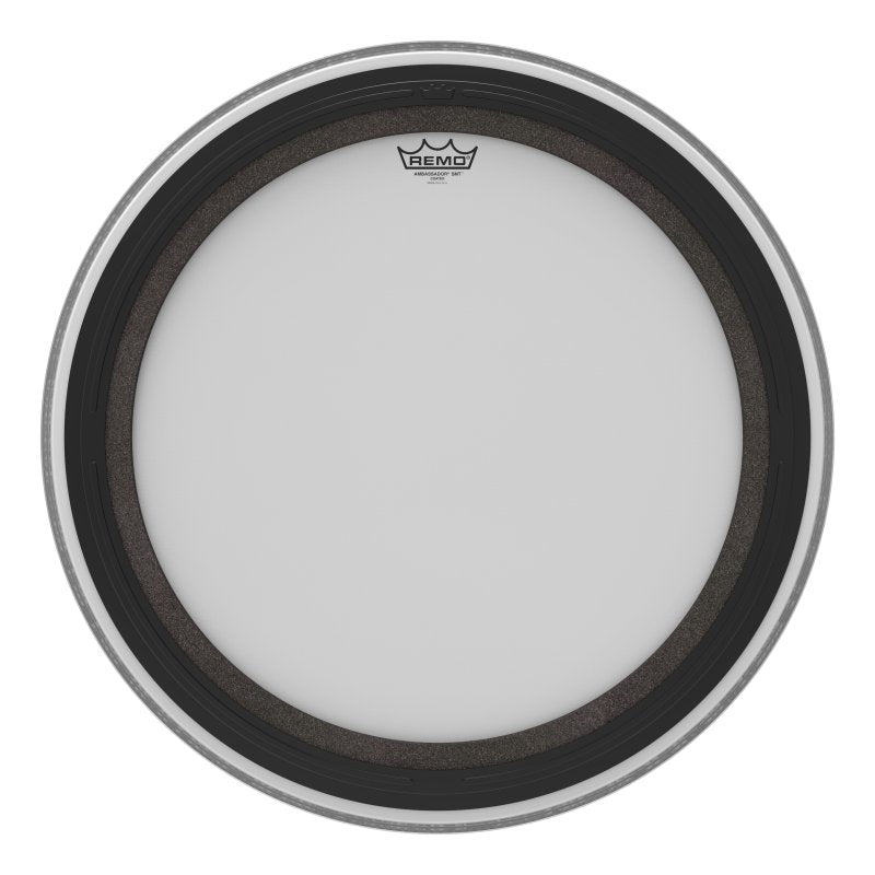 The Ambassador® SMT™ Coated bass drumhead is a pre-muffled design featuring Sub Muffl® Technology. It is constructed with a coated 10-mil single-ply film, and an externally mounted dampening profile with free-floating acoustic foam. It enables the head and drum shell to maintain full sound characteristics with additional attack and low-end frequencies. SMT technology allows a broad tonal spectrum of tuning ranges with controlled high and mid frequencies coupled with deep, powerful low tones. It is a new industry standard and one of the market's most musical and versatile pre-muffled bass drumheads. Ideal for live and recording applications.
