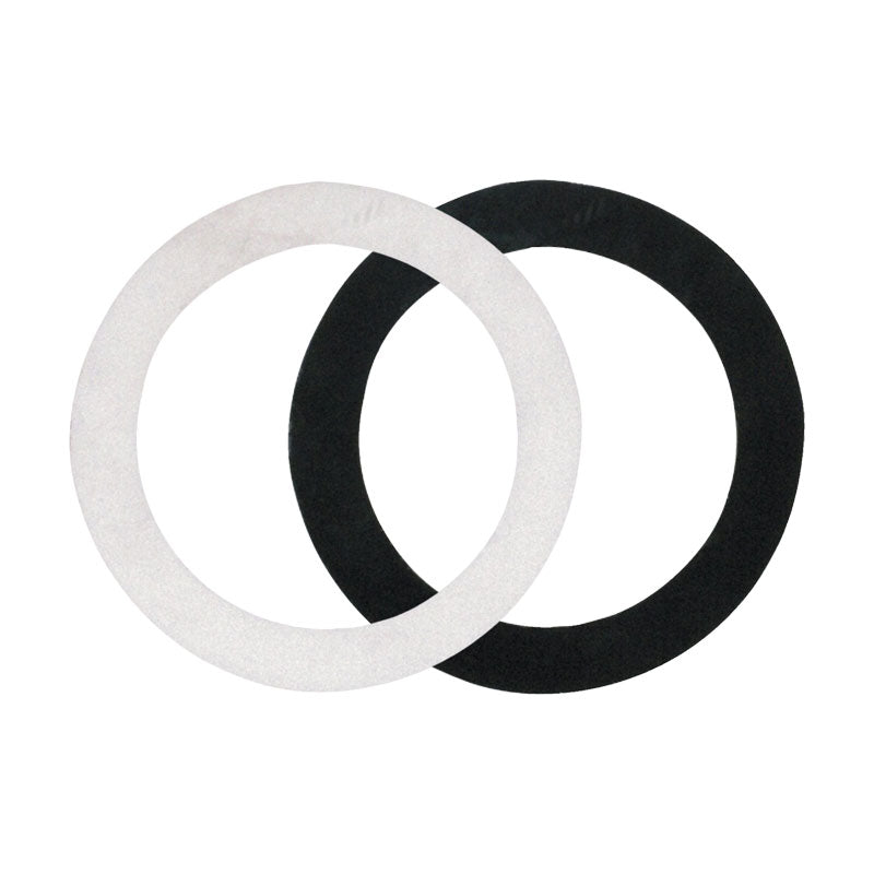The DynamO is a hole cutting template for resonant Bass drumheads that provides a vent hole for all drum mics. The DynamO is a laminated Mylar with a high strength adhesive backing providing added durability for the drumhead to prevent tearing when adding or removing microphones. Available in black and white sizes 5.5", 7", 9" and multi packs.