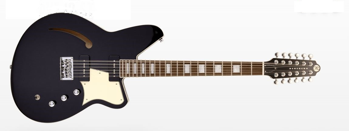 Larger than life tone and style, not larger than life problems. The bridge is fully intonateable for all 12 strings – independently – chords are always in tune and sound sweeter than you’d expect. The wide nut provides spacing for the extra strings, and the shorter 24-3/4” scale length provides lower string tension. Easier chording means it’s easier to get that shimmer. We design our own proprietary custom pickups, to achieve the best tonal match with our instruments. Reverend pickups are also specifically designed for each position, for balanced volume and tone when switching. FIVE-PIECE KORINA AND WALNUT NECK Multiple layers make the neck extra stong, and able to withstand the pressure of twelve strings, yet the Korina means the neck is lightweight. KORINA BODY Korina (aka White Limba) is a medium-light weight wood, highly prized for consistency and tonal qualities. Often found in boutique and vintage instruments, all Reverends feature Korina bodies. A highly resonant wood, Korina is a key factor to producing our lively, responsive instruments that are rich in harmonics. BASS CONTOUR This passive bass roll-off is great for tightening up the low end, or re-voicing the pickups. It can make a humbucker sound like a single-coil, or give a P-90 that classic twang. Variable pickup voicing at your fingertips! PIN-LOCK TUNERS A thumbwheel under the tuner pushes a steel pin up through the post, locking the string in place for exceptional tuning stability and super-fast string changes. INITIALED HEADSTOCK Every Reverend is hand initialed and serial numbered on the back of the headstock by one of our highly skilled technicians who sets up, inspects, and tests every instrument. FULLY INTONATEABLE BRIDGE Chords stay in tune and sound sweeter because this bridge allows independent intonation for each of the 12 strings. 1-3/4" WIDE BONEITE NUT We use "Boneite," a synthetic bone nut, that is more consistent than natural bone, on all Reverend instruments. It reduces friction, allowing the strings to slide through the nut slots smoothly, improving tuning stability. CUSTOM DOME KNOBS Our proprietary knobs feature a lower profile which is less likely to be accidentally hit by the player's hand, and the white dot lets you easily see where your knob rotation is set. DUAL-ACTION TRUSS ROD Our dual action rod adjusts in both directions, allowing back bow or forward bow. This assures correct adjustment range is possible regardless of string tension, extreme climate conditions, or the effects of long term aging. It’s also located at the headstock for easy access. CUSTOM JACK PLATE Our proprietary jack plate features four mounting screws, instead of two. The extra screws prevent the plate from tearing out of the body. Made of steel for durability, the laser etched logo adds an extra touch of class! PURE TONE JACK All Reverends use an upgraded jack by Pure Tone Technologies. A standard jack has single contacts, but the Pure Tone jack has dual contacts for improved grip, audio signal and reliability. The most dependable guitar jack available. TREBLE BLEED CIRCUIT All Reverend guitars have a treble bleed circuit, preserving the treble when you roll back the volume control. When you roll back a standard volume control, the tone loses treble and becomes dull sounding. Now you can turn down and still sound great! 10% POTS We use Alpha control pots with a +-10% rating. While a typical pot is +-20%, our pots are built to tighter specifications, making them more consistent. Typically used in expensive boutique guitars, but standard issue in all Reverends. 10% POLY CAPS We use caps with a +-10% rating, while a typical cap is +-20%. Our caps are made to tighter specifications, so they’re more consistent. Made of polyester, they’re also longer lasting, and less affected by temperature than cheaper ceramic caps. Typically used in expensive boutique guitars. BODYSemi-Hollow Korina, Solid Spruce Top. PICKUPS9A5 Bridge, 9A5 Neck BRIDGEIndependent Intonation for each String NECKFive-Piece Korina/Walnut SCALE24 3/4" NECK PROFILEMedium Oval FINGERBOARDPau Ferro - 12" Radius FRETS22 Medium Jumbo TRUSS RODDual Action - Headstock Access TUNERSReverend Pin-Lock NUT1.75" Width - Boneite CONTROLSVolume, Tone, Bass Contour, 3-way STRINGS10-10, 12-12, 17-8, 26-12, 36-18, 46-26 CASELG Two-Toned Teardrop (Available Separately)