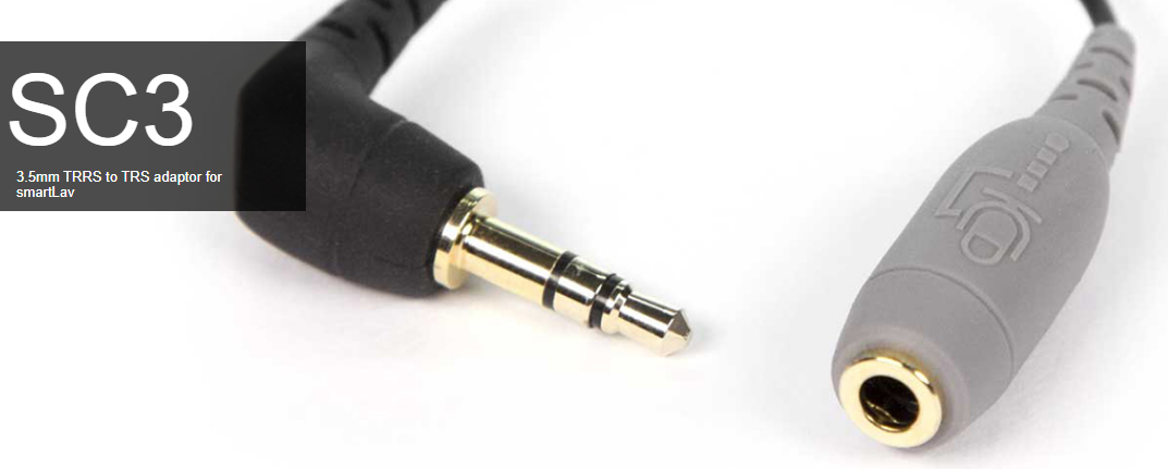 The SC3 is a high-quality shielded adaptor, designed to allow the smartLav to connect to 3.5mm TRS devices such as cameras and audio recorders. The gold-plated contacts are colour coded, with grey indicating the TRRS input.