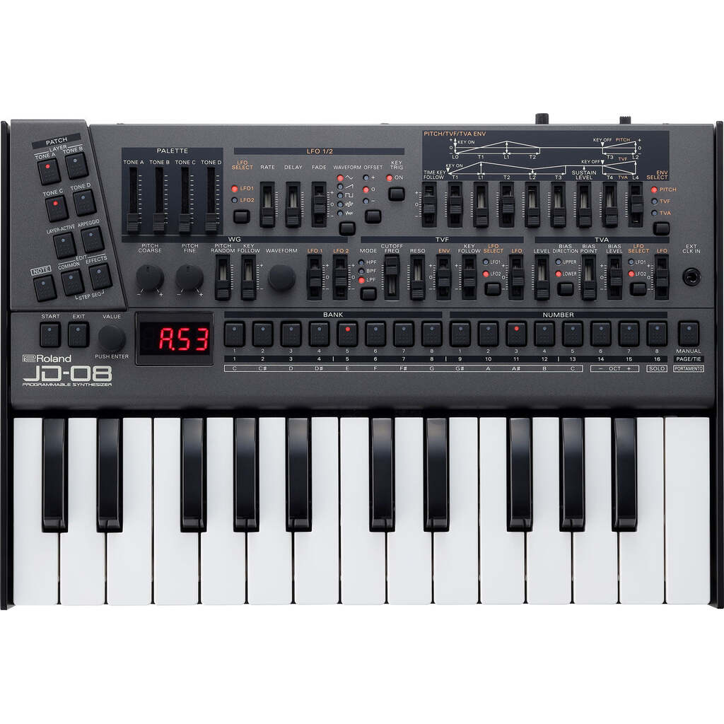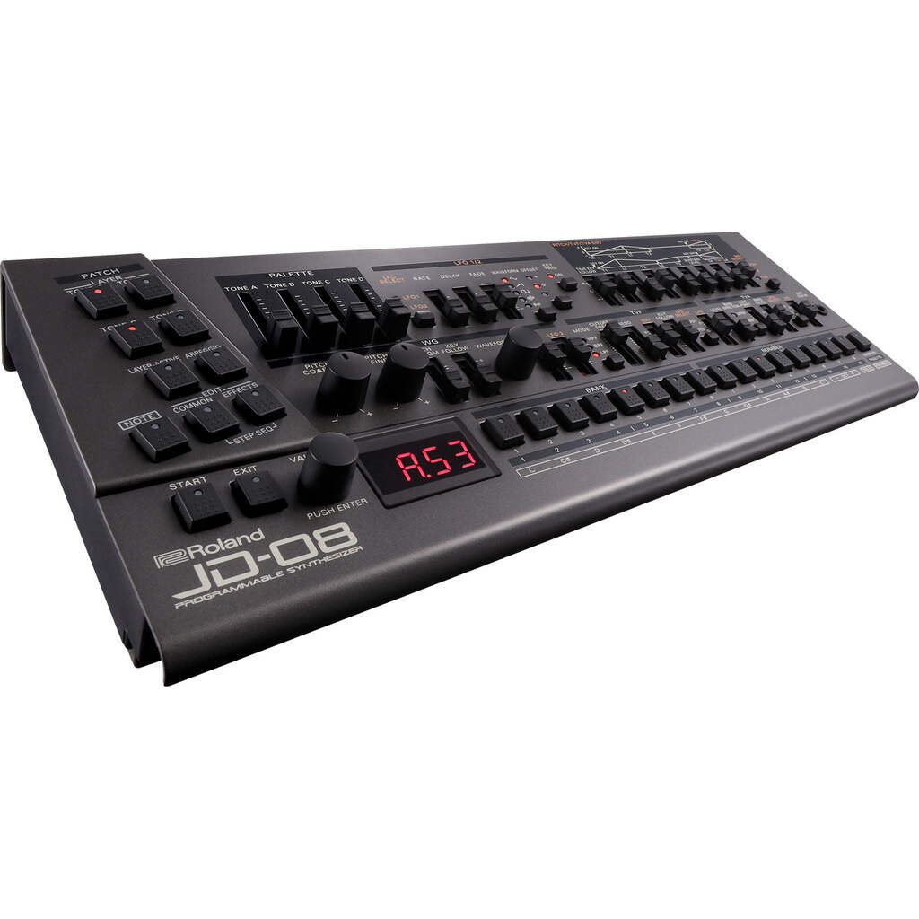 With its retro workflow, evocative sounds, and powerful effects, the JD-800 was a favorite for top electronic music producers through the ’90s and beyond. Combining the original JD-800 waveforms with advanced modeling techniques, the JD-08 delivers the exquisite hands-on sound design of the original, along with hugely expanded polyphony, a two-part polyphonic sequencer, and other modern updates.