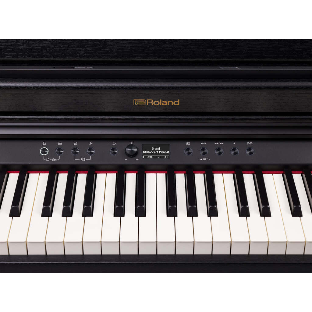 If you’re drawn to the classic contours of an acoustic piano, the RP701 will appeal to you. Influenced by the award-winning design of Roland’s high-end LX and HP series, the sophisticated cabinet blends curves and straight lines, with slim front legs that complete the visual statement. Available in four finishes, the RP701 blends into a wide variety of room styles. Try soothing and subtle dark rosewood, or a light oak finish with its fusion of elegant oak grain and fashionable greige accents. Or just keep it classic with the striking white or contemporary black options.