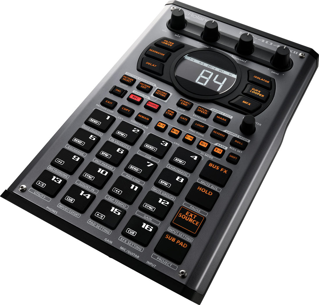Extensive onboard effects, including SP classics like Vinyl Simulator and DJFX Looper, new Lo-fi, Cassette Simulator, and Resonator effects, and dedicated Vocoder, Auto Pitch, and Guitar Amp Simulator effects for the mic/guitar input